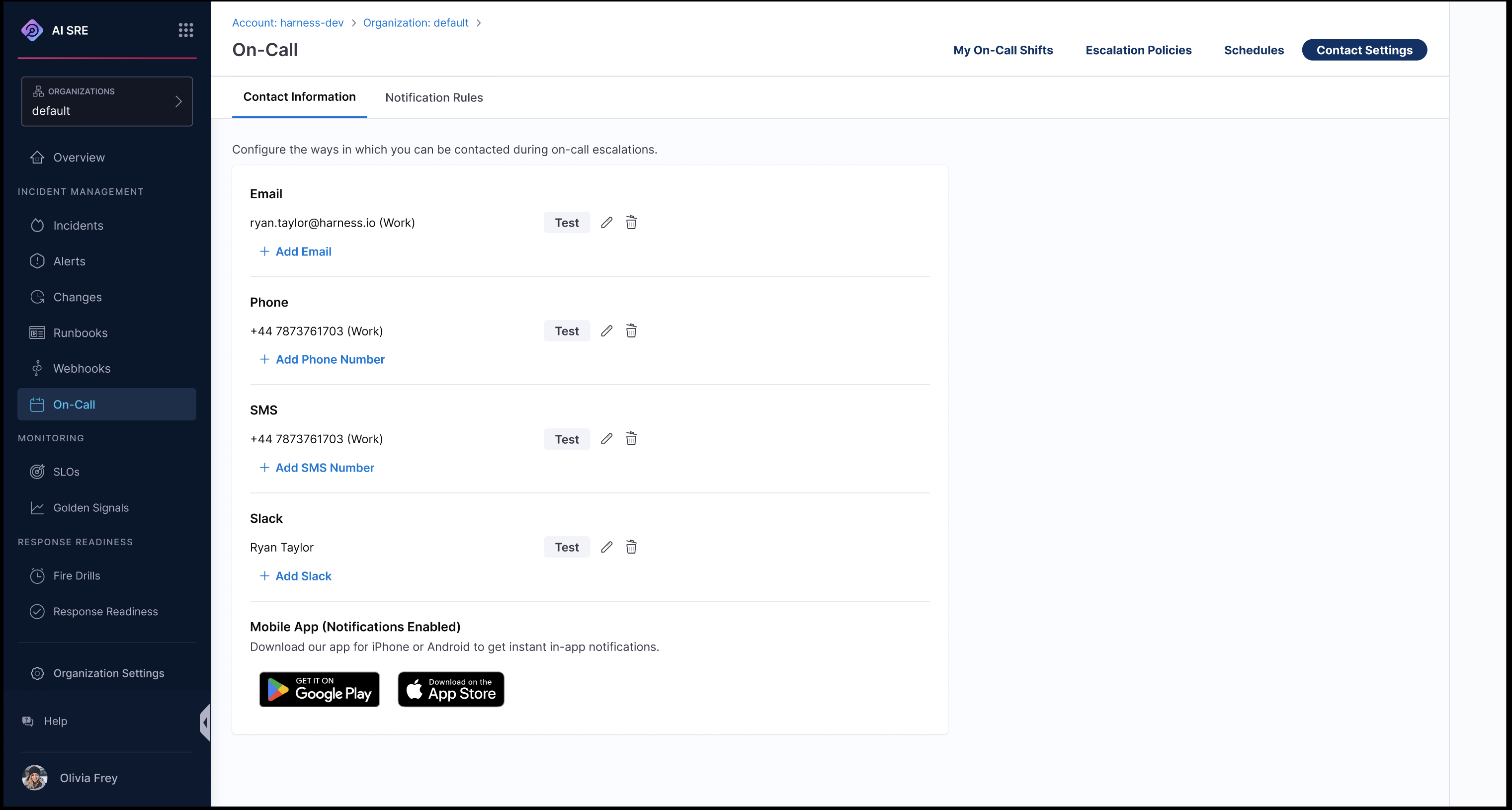 Harness AI SRE's on-call management module provides a unified platform for managing incident response and on-call operations. By integrating on-call capabilities directly into the incident management workflow, teams can streamline their incident response process and reduce mean time to resolution (MTTR).