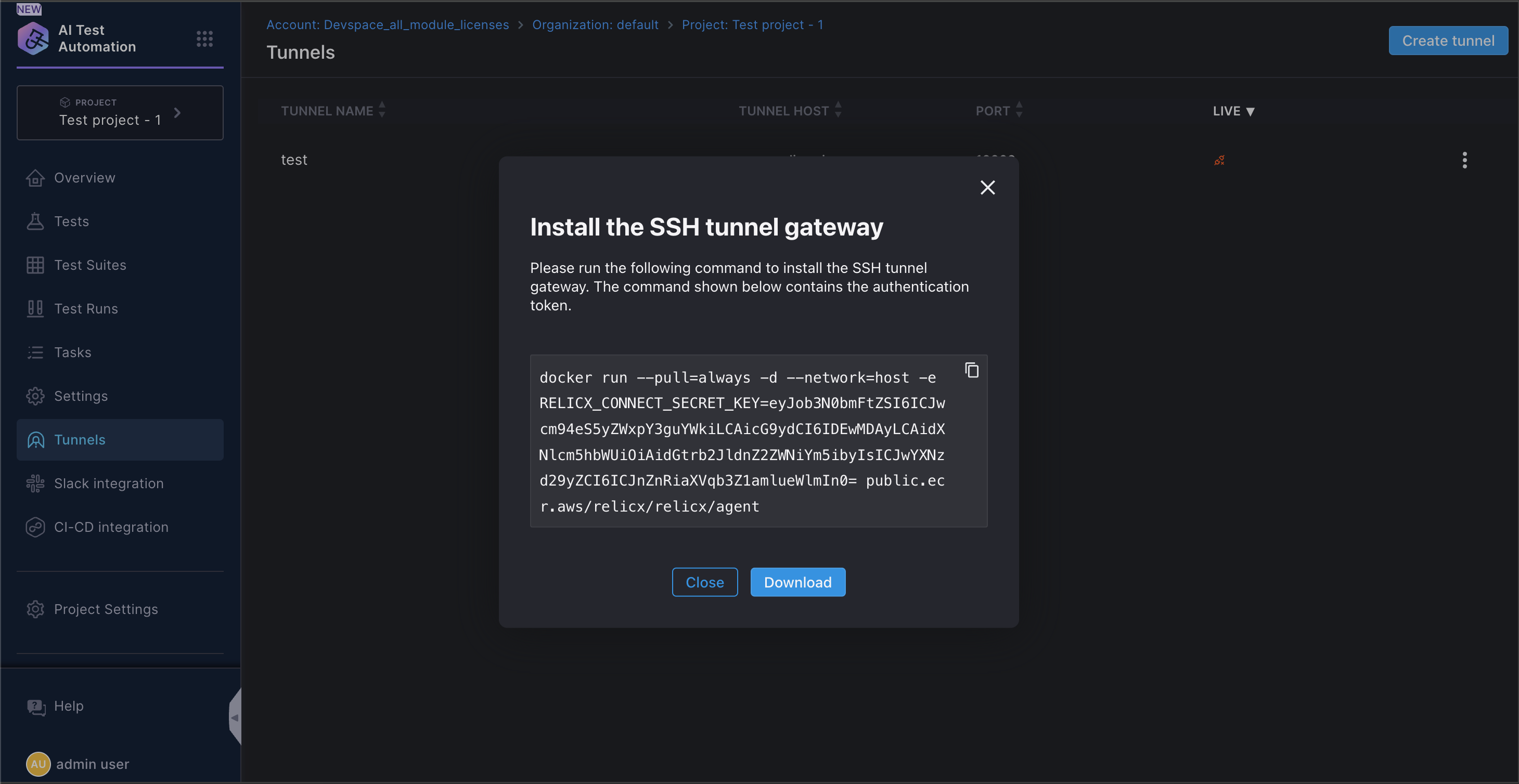 Once the Tunnel is saved, you will be prompted to copy the docker command or download it as a script.