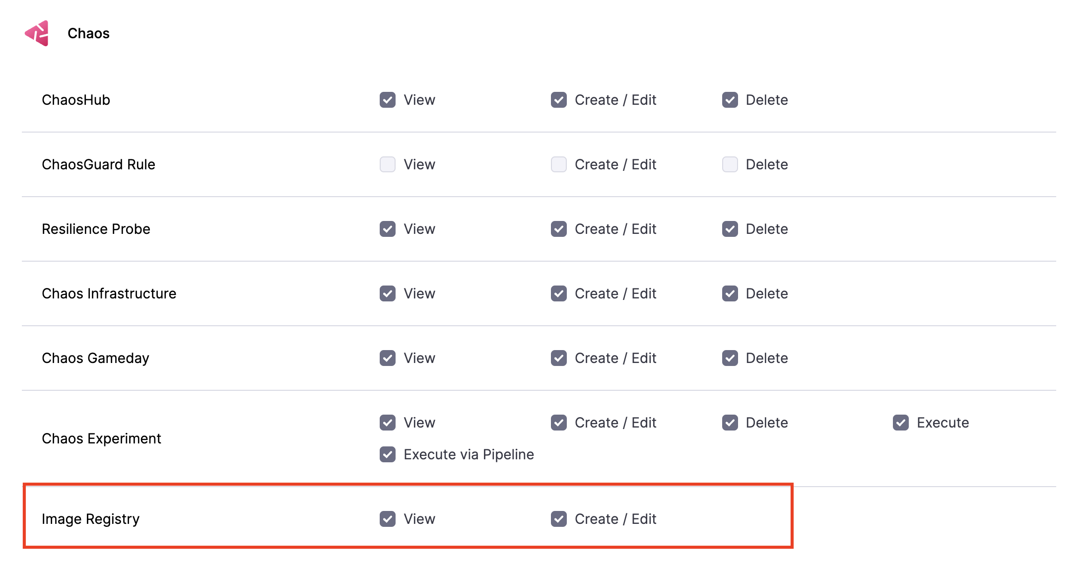 Depending on whether you use DDCR (Delegate Driven Chaos Runner) or dedicated chaos infrastructure, image registry settings is configured from account/organization/project/infrastructure settings or from the UI, respectively.