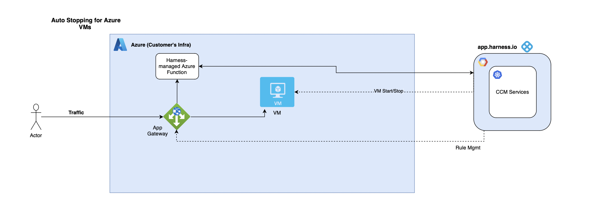 - A suite of CCM services collaborates seamlessly, orchestrating the AutoStopping mechanism tailored for Azure VMs. These services serve as the backbone, driving automation and intelligence.