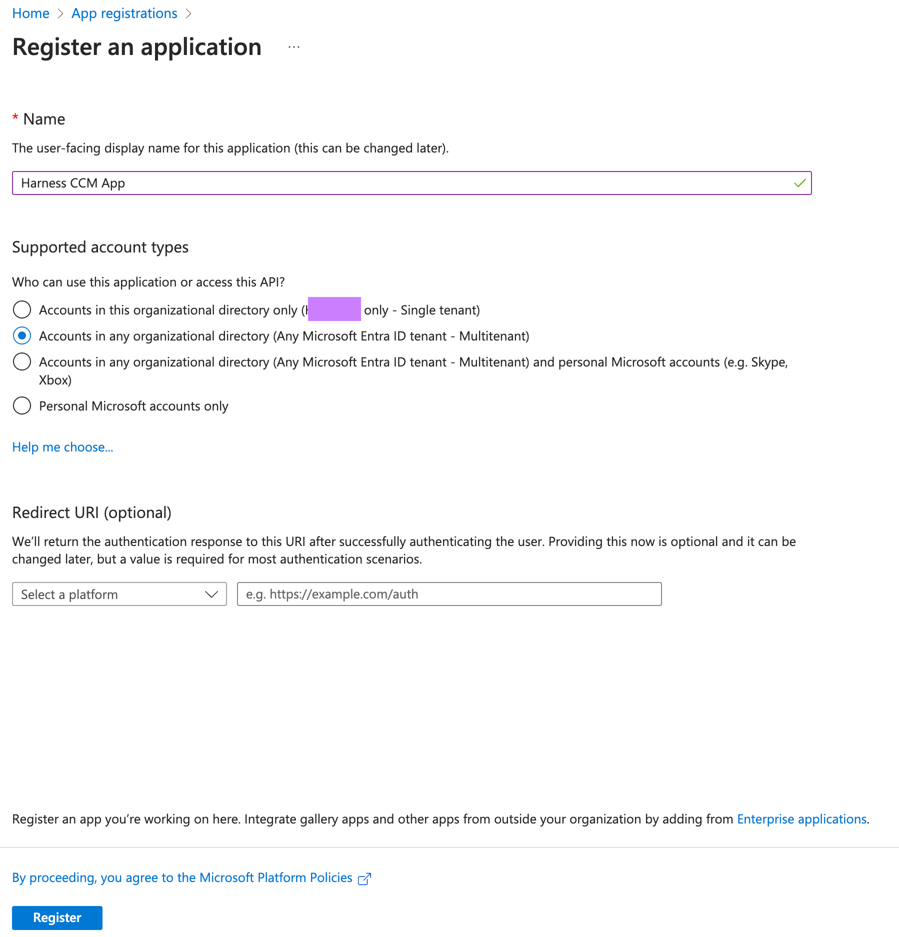 . - Click on Register. For more information, go to Quickstart: Register an App.