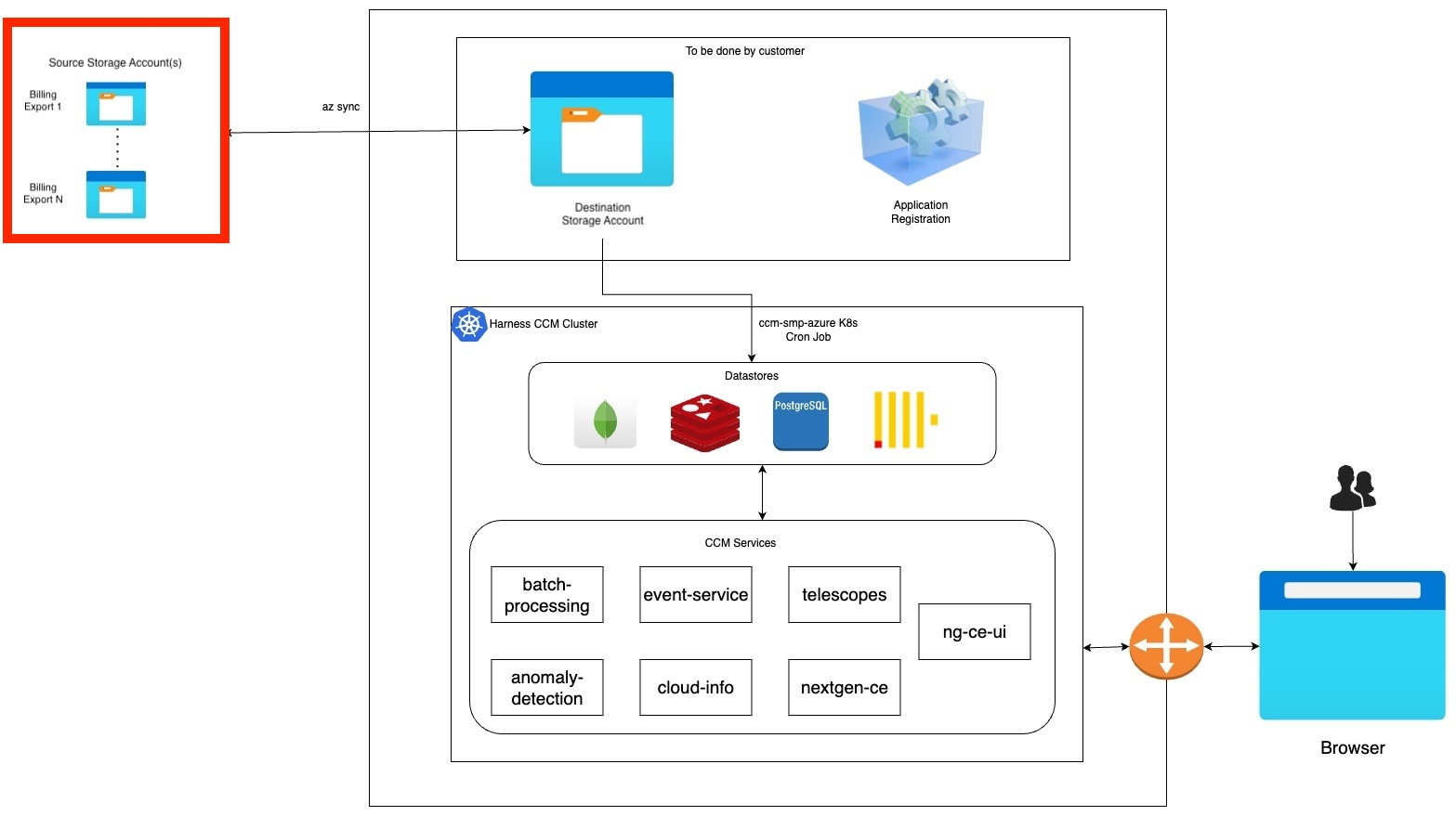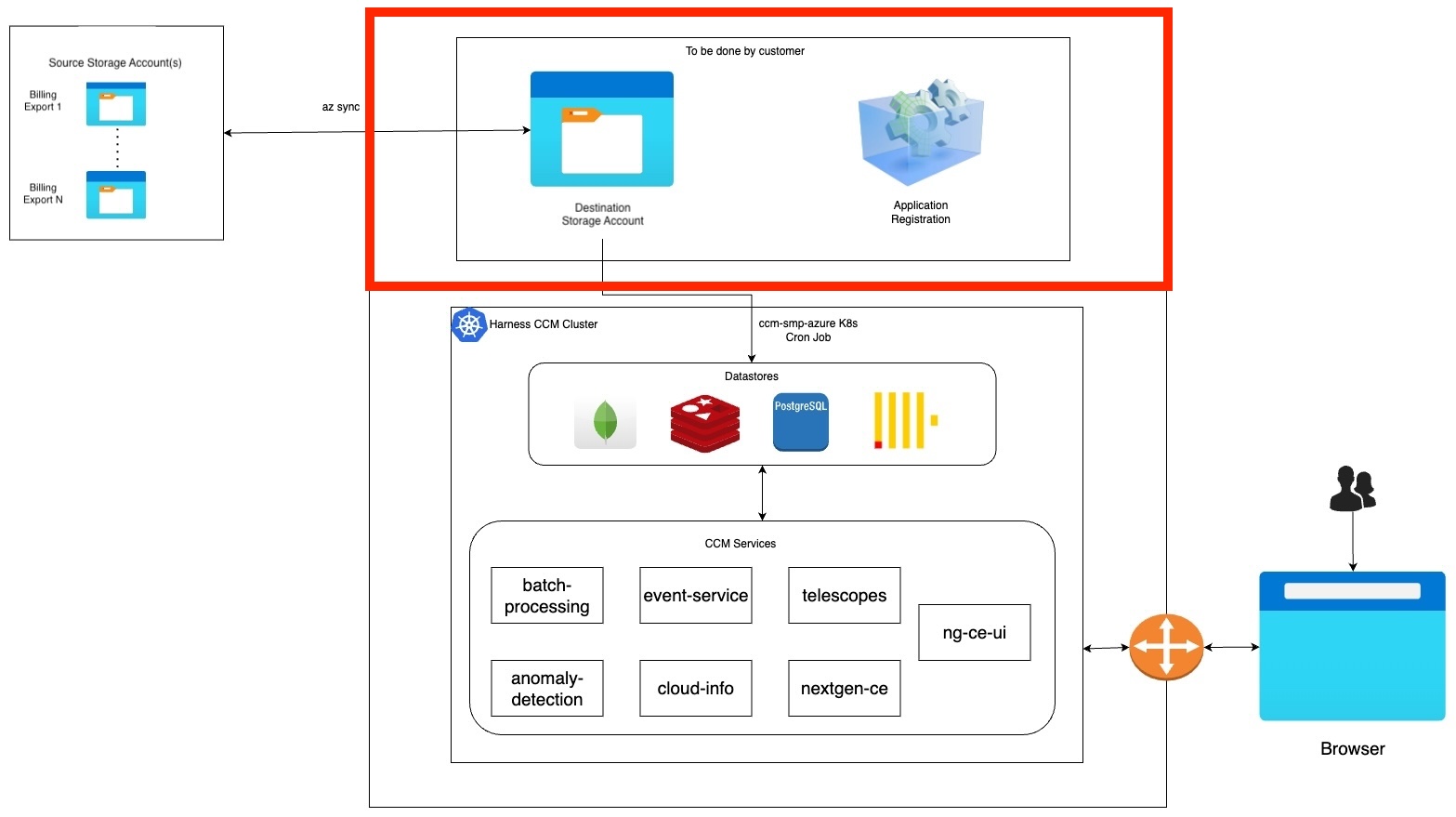 The goal of this particular documentation page is to set up an Azure Destination Storage Account and Application Registration, then configure an existing Harness Self-Managed Enterprise Edition deployment to utilize these components to act as a "staging area" for future Azure Billing Exports to be processed and made available for Harness CCM capabilities.