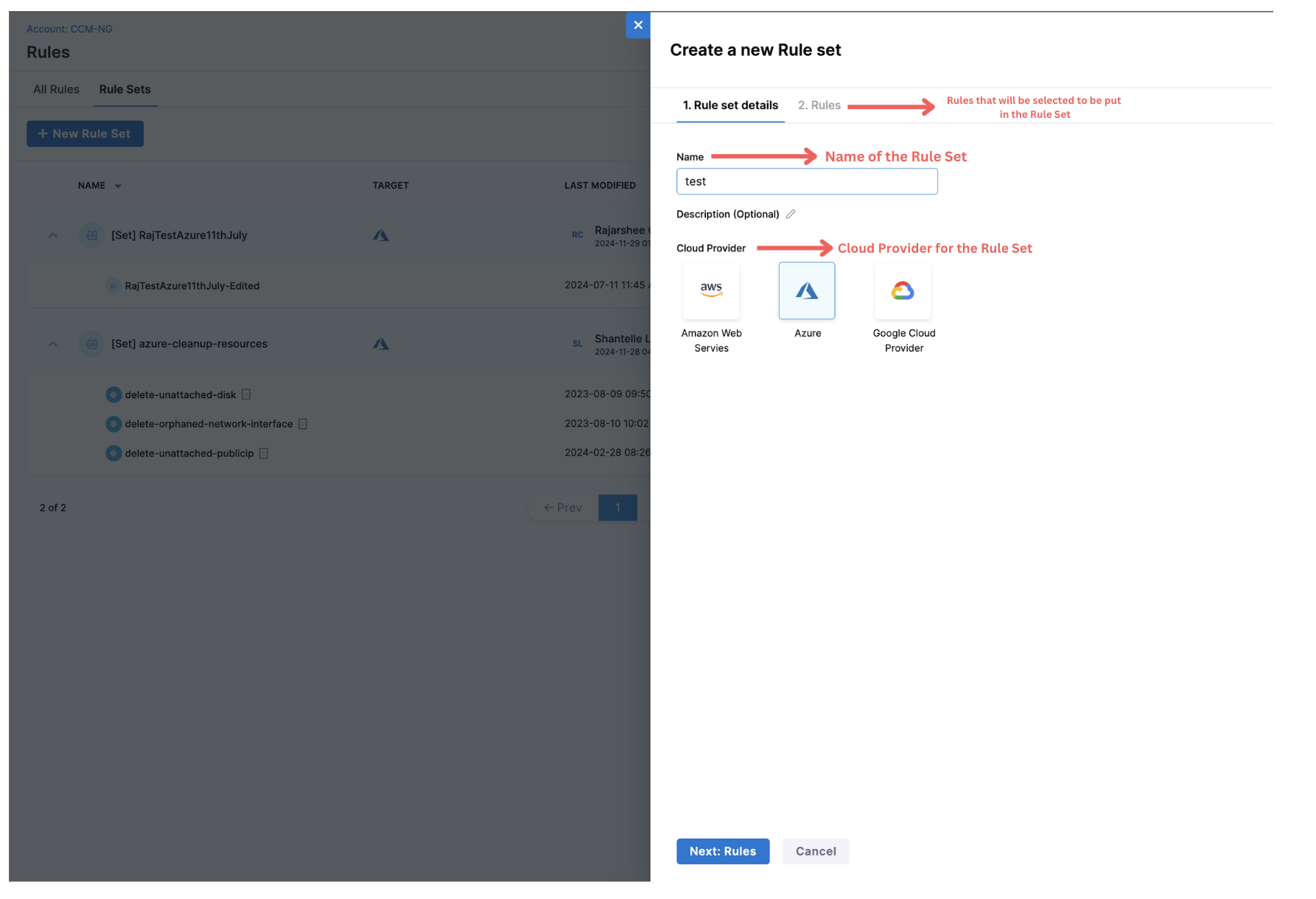Rules help you set up Asset Governance for your cloud provider. A Rule is essentially a small file with a set of logic that you can run on your cloud infrastructure. For example, there might be a scenario in which you want to delete all low utilised load balancers where packet count is less than 1000 in last 72 hours on Azure. In such a case, we write and run a rule which does this for us.