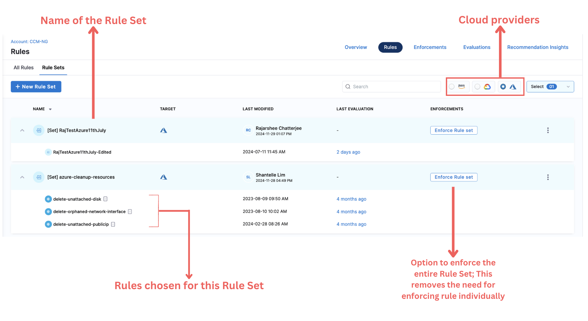 Harness Concepts: Rules, Rule Sets, Enforcements and Evaluations to optimise cloud costs