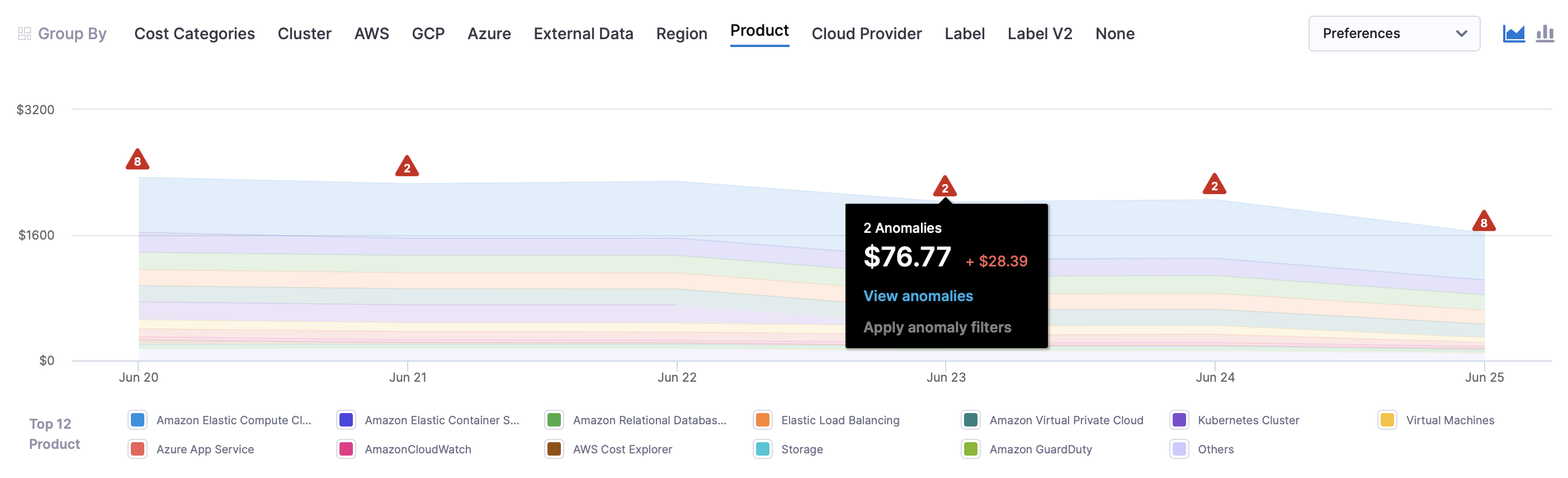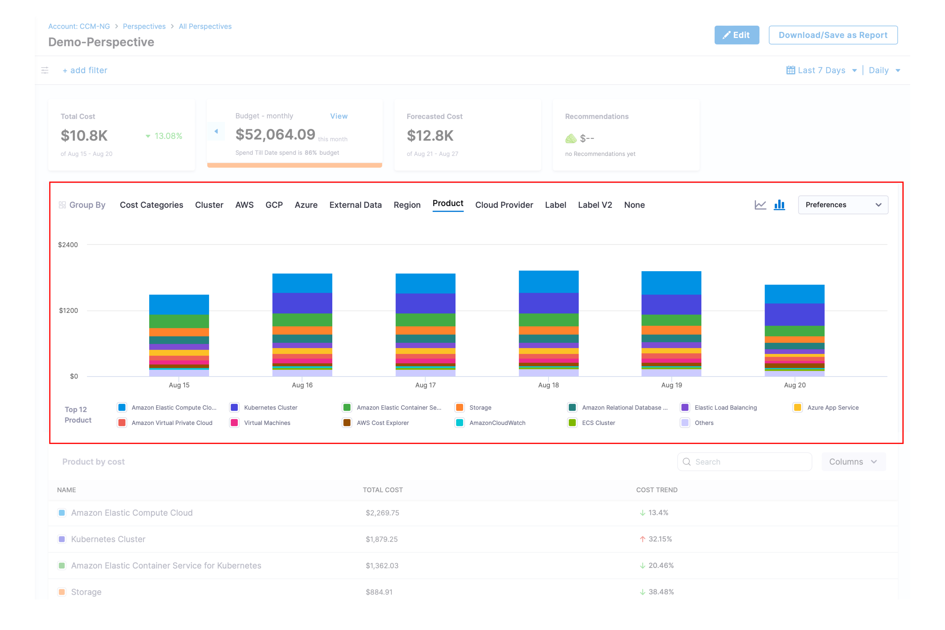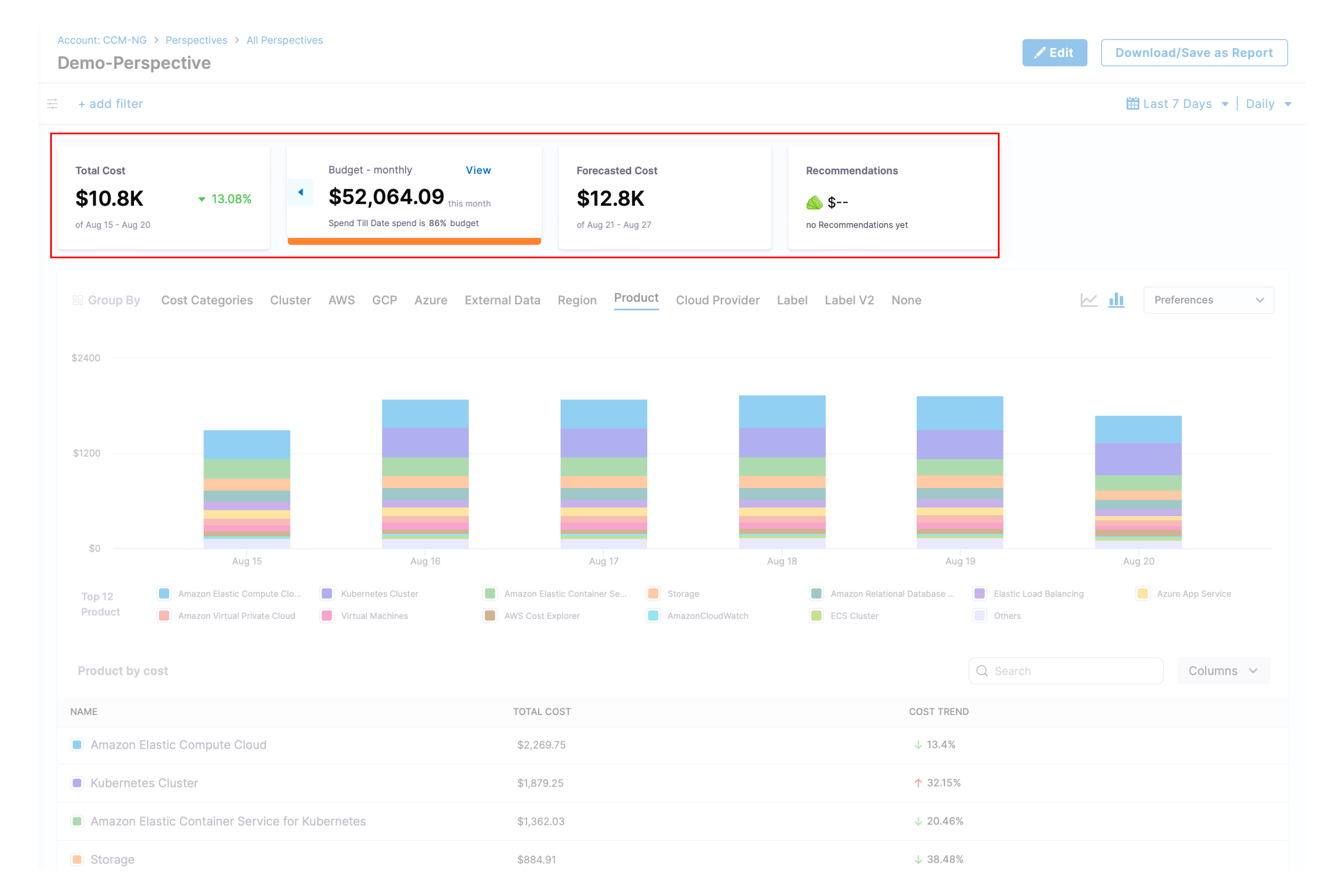 - Product: Each of your active products with its cloud costs.