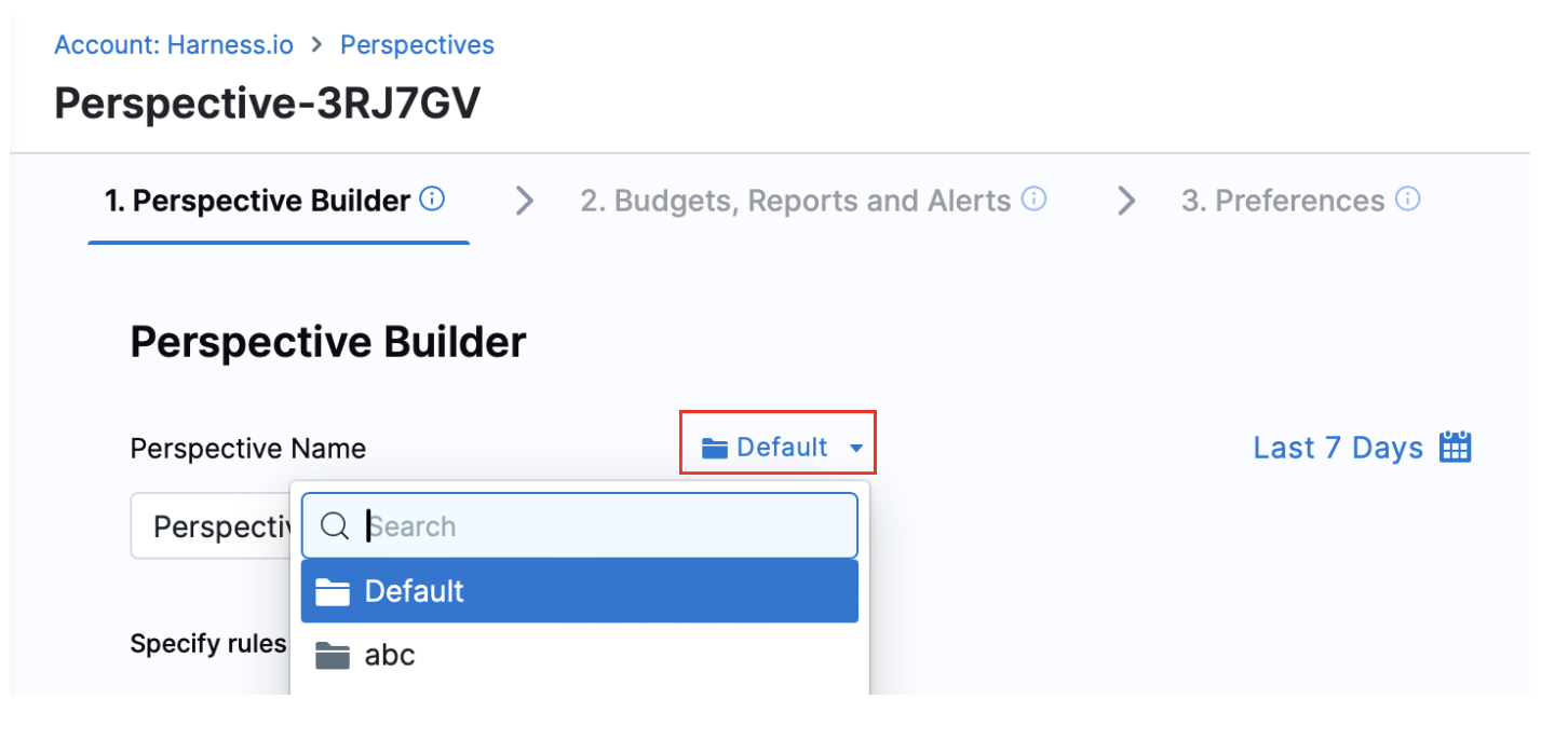 - Cost Categories: You can create a perspective by filtering based on the cost categories you have created. To create cost categories, see Use Cost Categories.