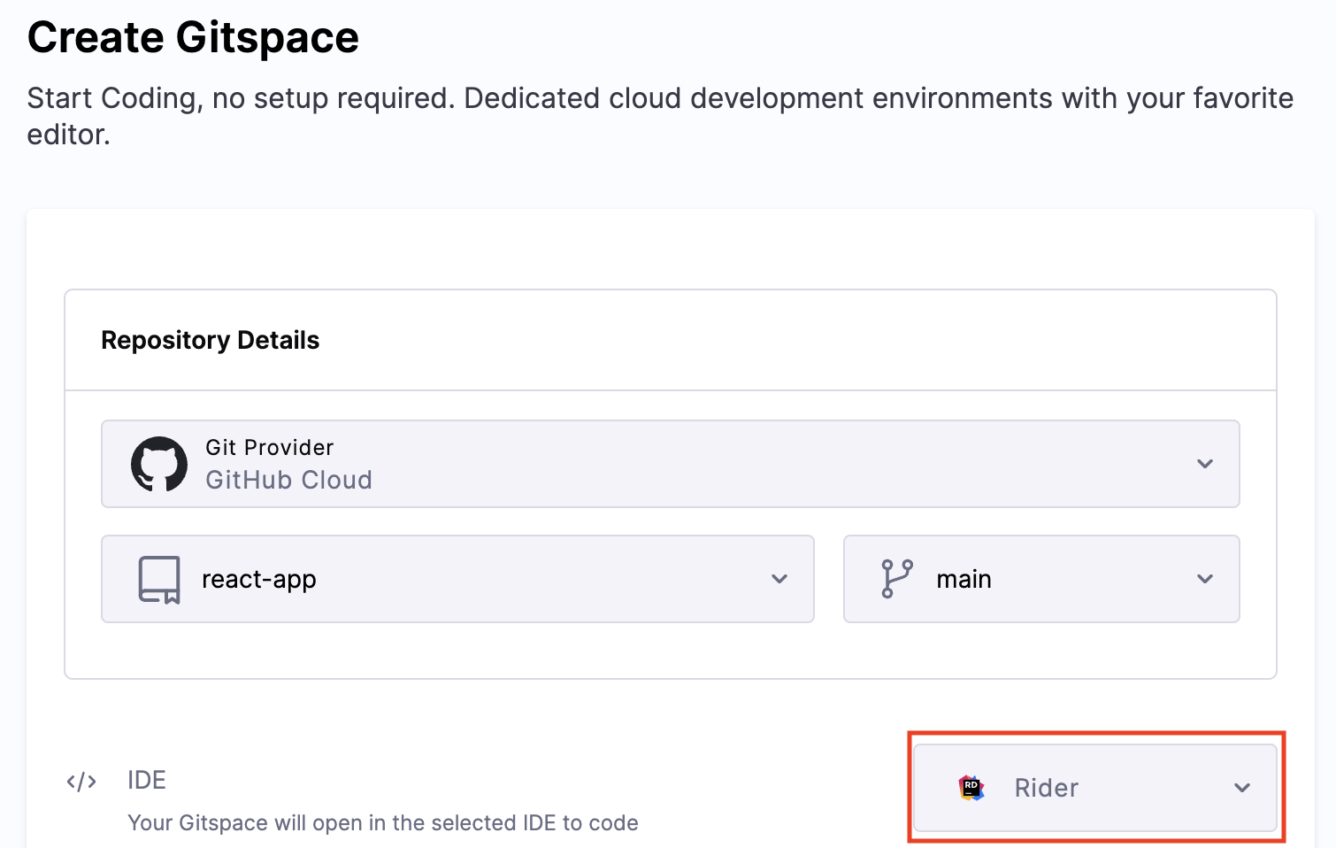 This guide provides a step-by-step walkthrough to help you use Rider IDE with your Gitspaces. Let’s get started!