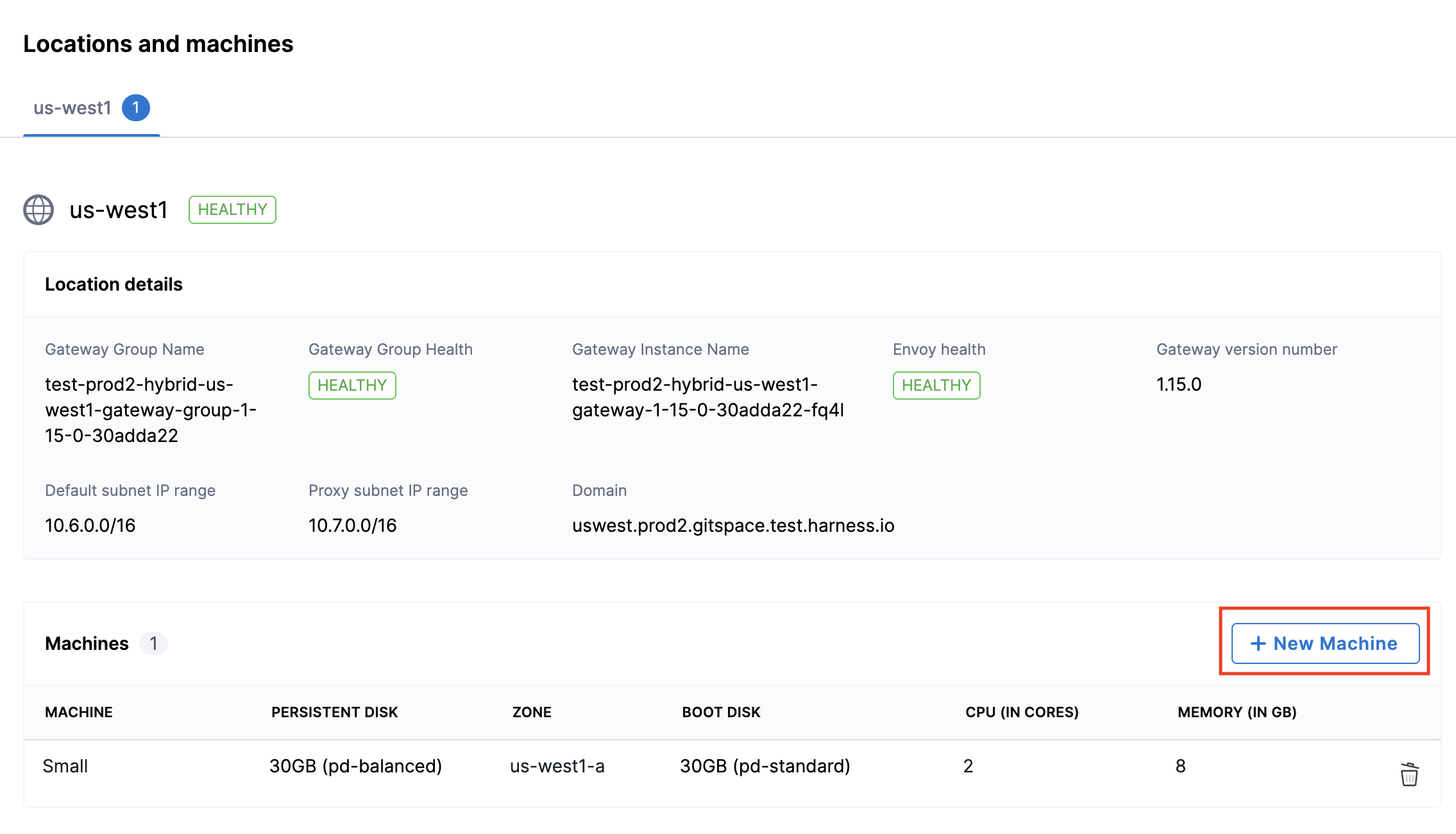 Verify that the Gateway Group Health status for the added region is marked as Healthy before creating any Self Hosted Gitspaces. Learn more in the Manage Gitspace Infrastructure guide.