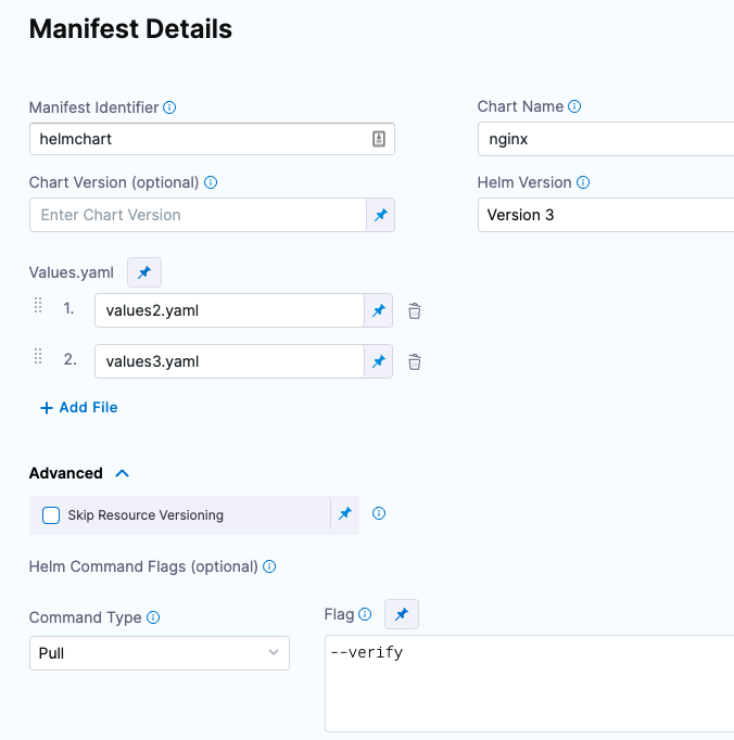 - You can define expressions for the Chart Name and Base Path settings, and, at runtime, Harness will resolve those expressions and let you pick a version.
