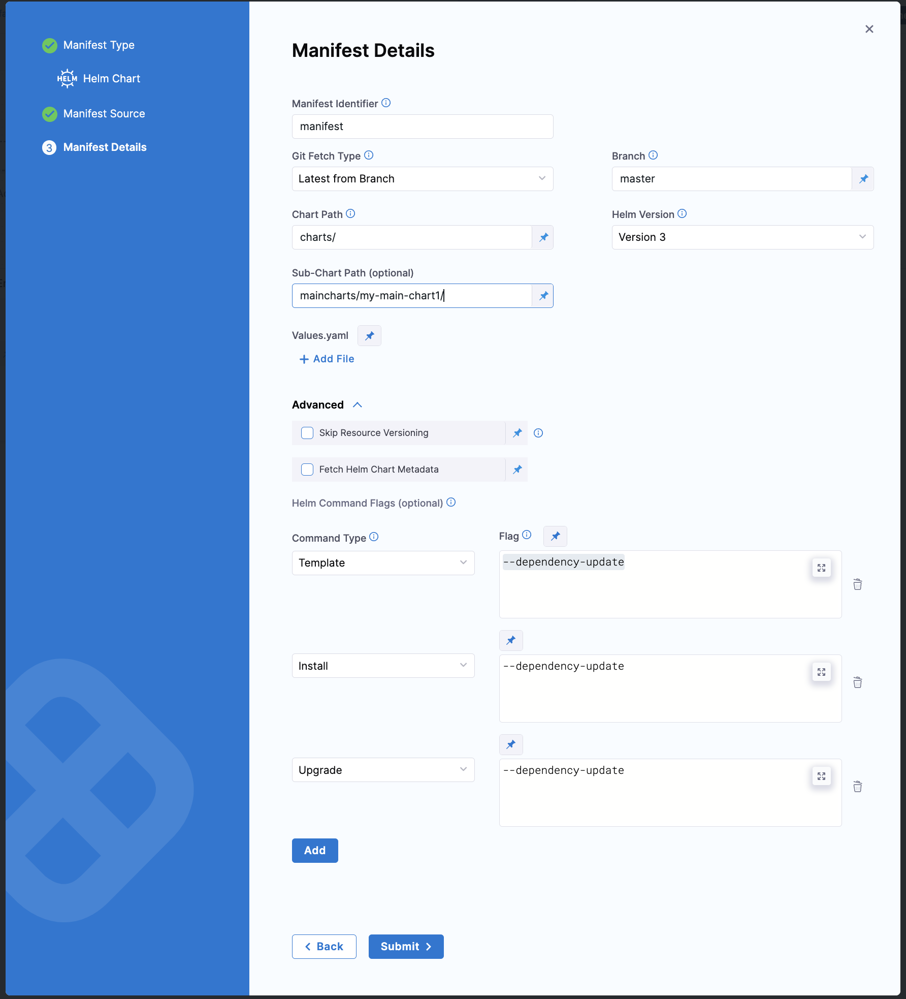 Here's a quick video showing you how to add different types of manifests. It also describes how to add Helm charts and multiple values YAML files in the same repo as the chart, or in separate repos.
