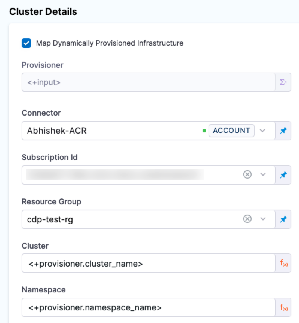 The Infrastructure Definition can point to a pre-existing cluster and namespace or Harness can dynamically provision the namespace using your provisioning scripts/templates. You must use an existing cluster in either use case.