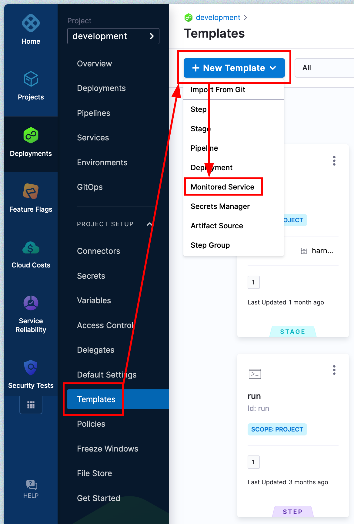 Start by going to the CD module, under project setup go to Templates, and then under + New Template