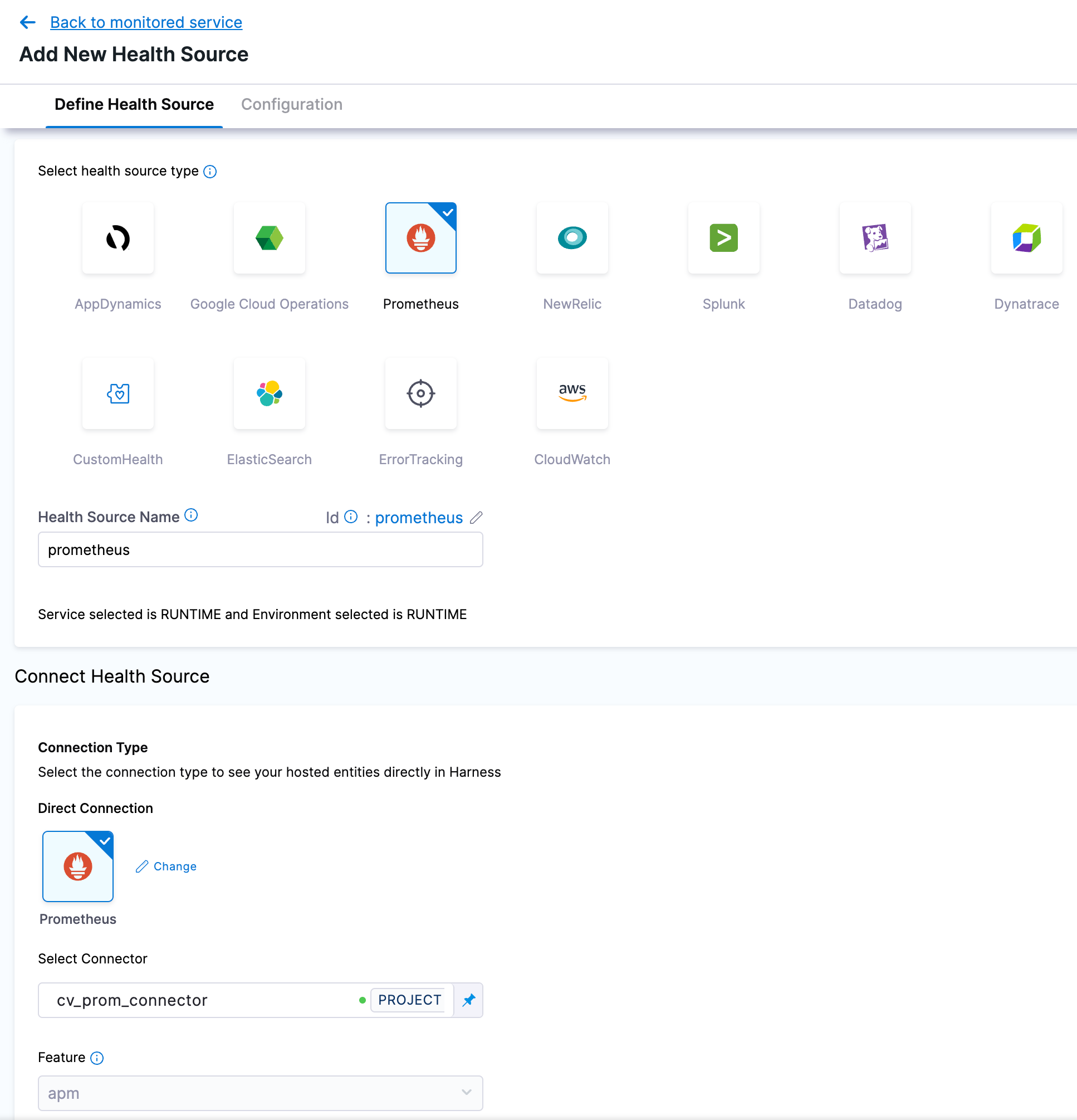 , select your health source (prometheus in this example), give it a name, and finally select the connector for this source.