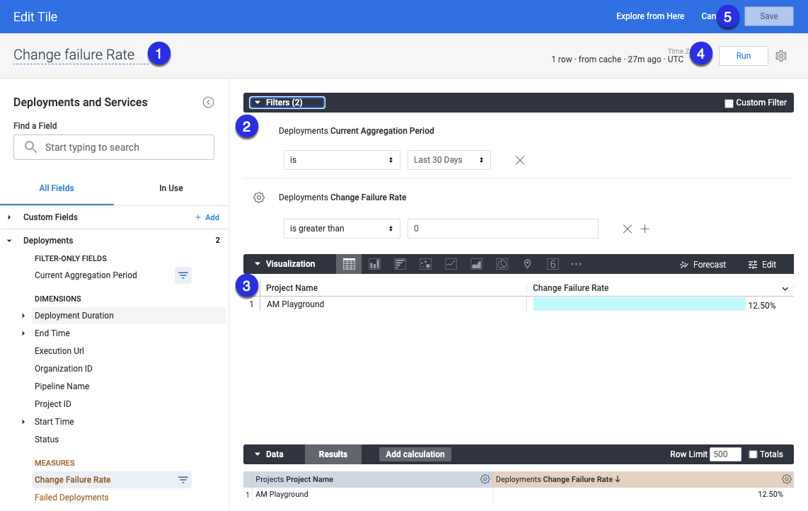 - Change Failure Rate is the percentage of failure rate across all services in a given time period.