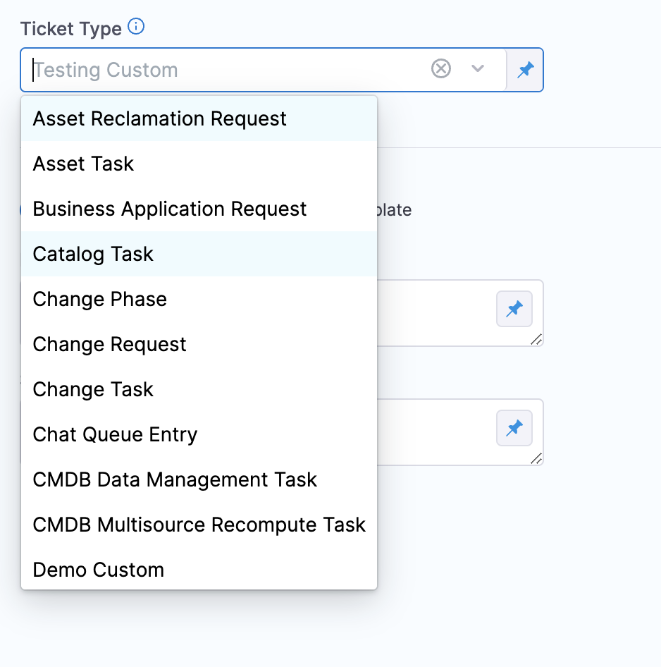 In Ticket Type, select a ServiceNow ticket type from the list.