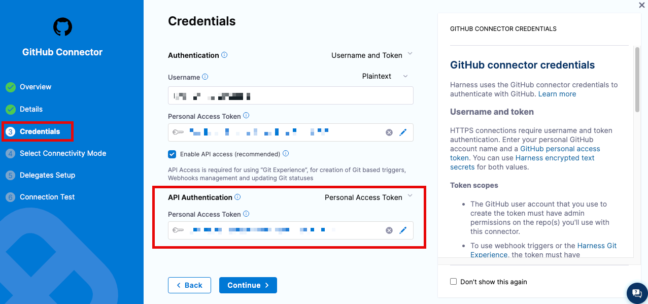 with the ID of the Harness text secret that contains your GitHub personal access token. -