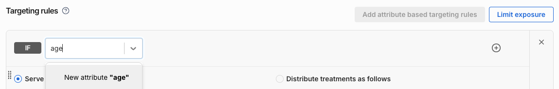 You can freely create attributes within attribute-based targeting rules on the feature flag’s Definition tab. (The attributes that you define in directly within a feature flag’s targeting rules become part of the feature flag definition, but are not associated with a project and traffic type.)