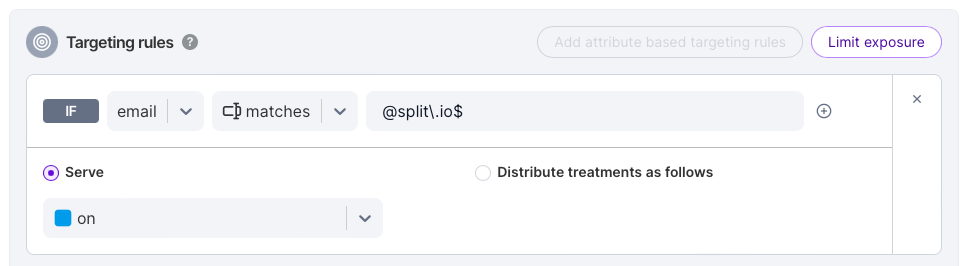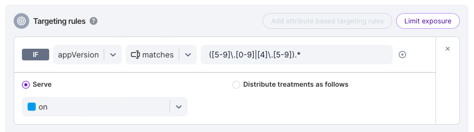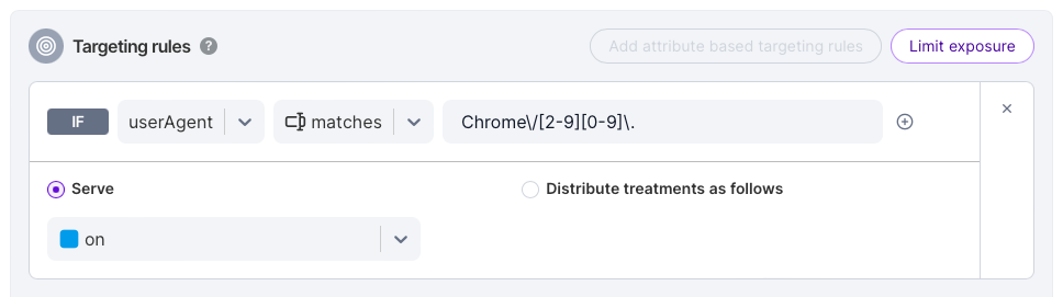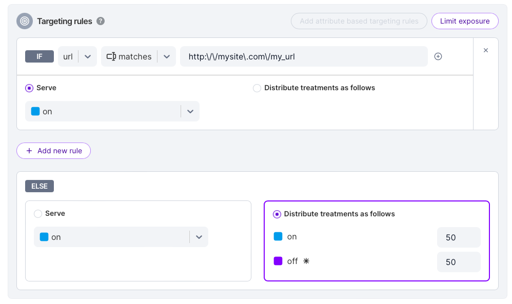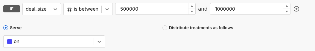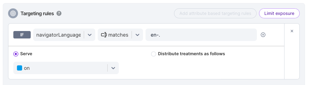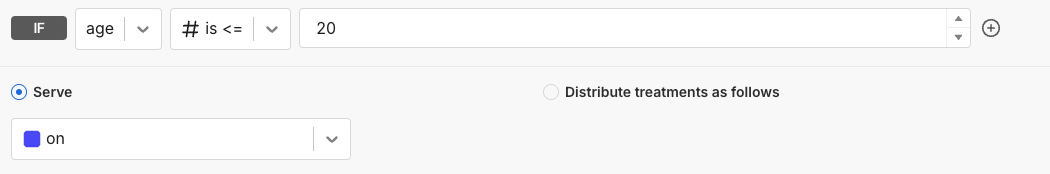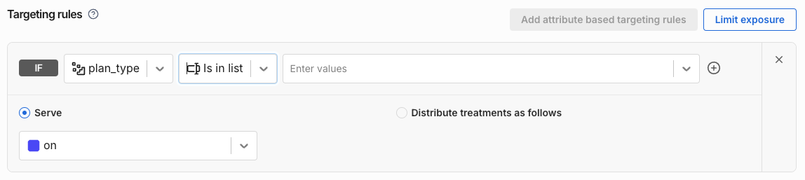 Complete the targeting rule by filling in the values to match against and choosing the treatment(s) to serve.