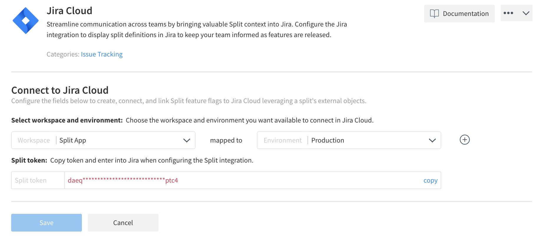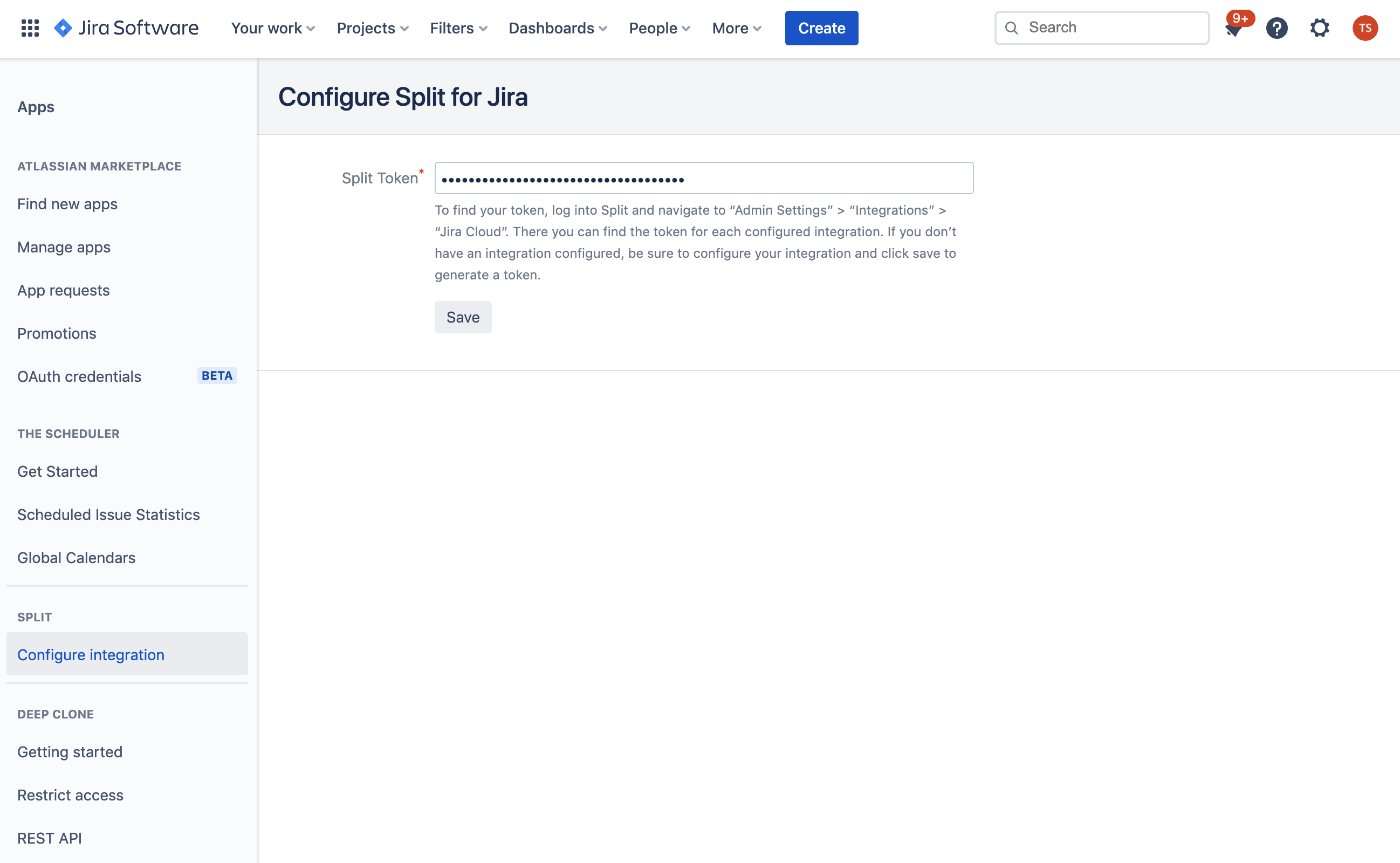 Within Apps in Jira Cloud, and after the Split for Jira app is installed, click Configure integration in the side menu under Harness FME.