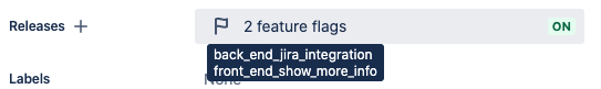 In Jira: You see either the name of the flag or the number of flags to which that issue is connected. On the right hand side, it indicates if the feature flags are active in the primary environment, which is selected for each project when the integration is set up.