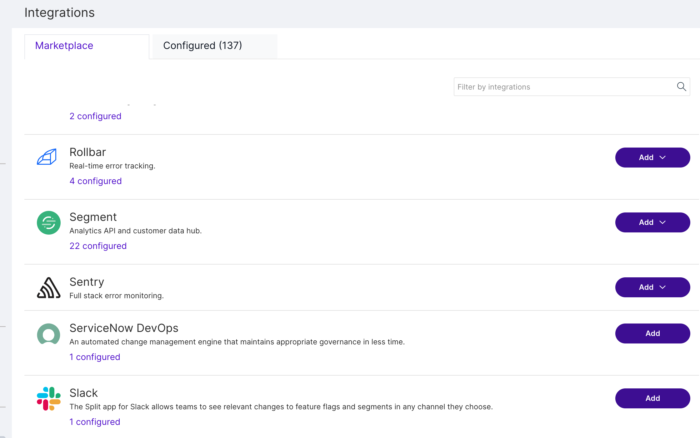 Find Sentry in the integration list, click Add and select the project for which you would like to configure the integration.