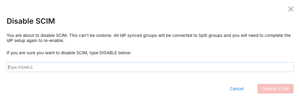 If you disable SCIM, you must set up the connection between Okta and Split again.