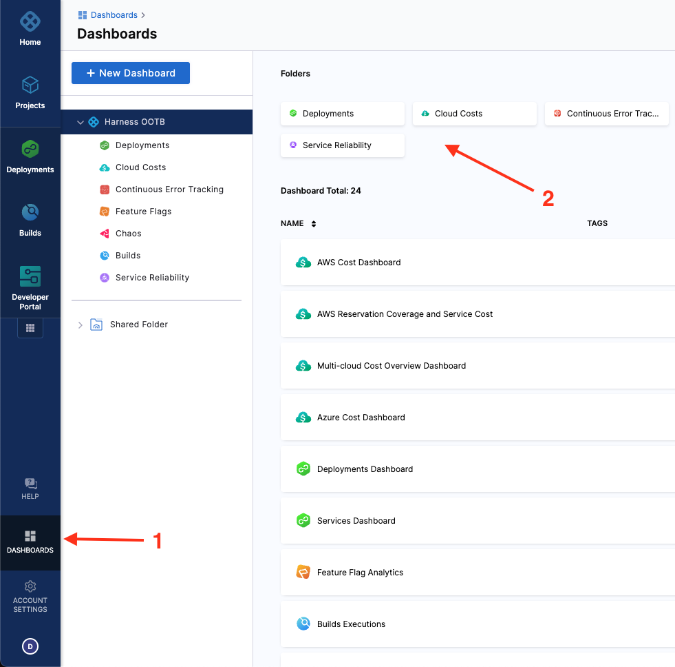 Dashboards is a Harness Platform Feature, that allows you to visualize key metrics and data related to your module. You can customize the dashboards to show specific metrics and data relevant to your needs, and access them from a central location. The Harness Dashboards provide actionable insights out of your IDP, so you can enable good developer experience in your org. Dashboards also allow you to set up scheduled delivery of reporting and alerts for your executives and stakeholders.