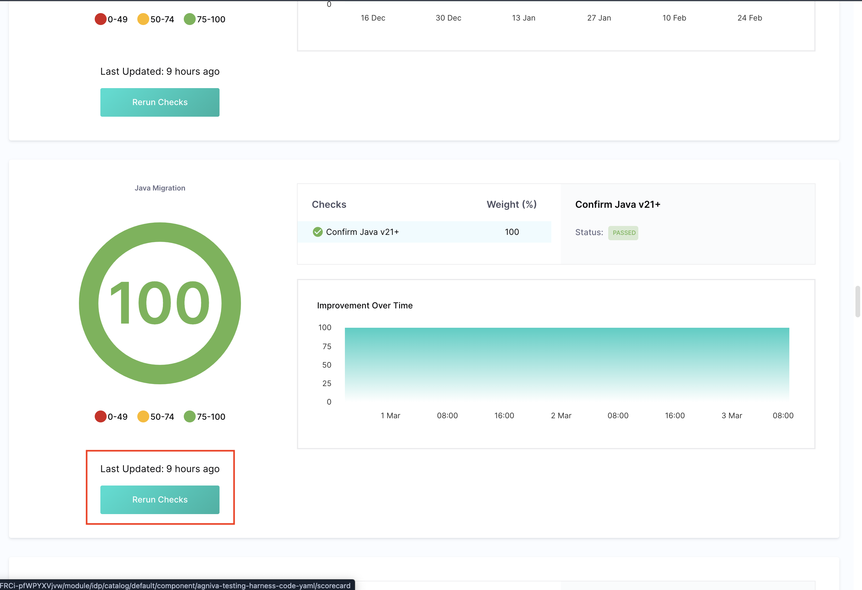 3. On the Scorecard page, locate the specific Scorecard you want to refresh and click "Rerun Checks".