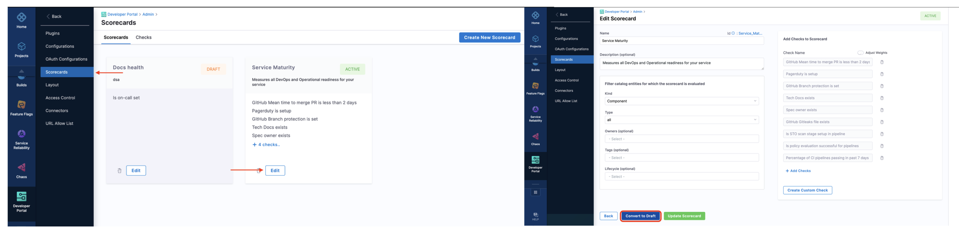 2. Additionally, you can also change the status of all the Scorecards you have to "draft". This will ensure that the computation will not run and will not be shown to the developer.
