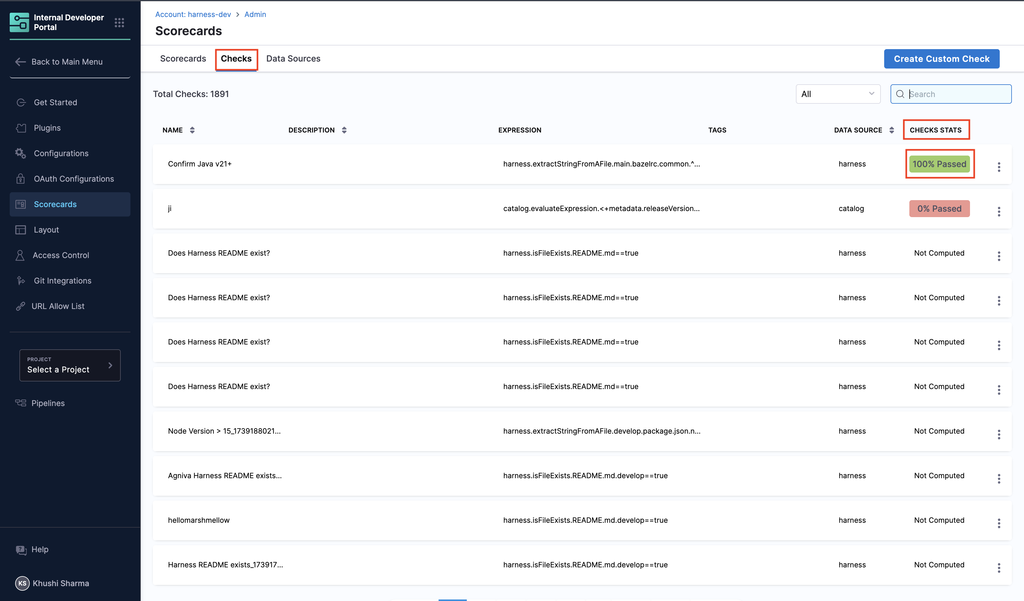 2. Click "Scorecards" and navigate to the "Checks" section.