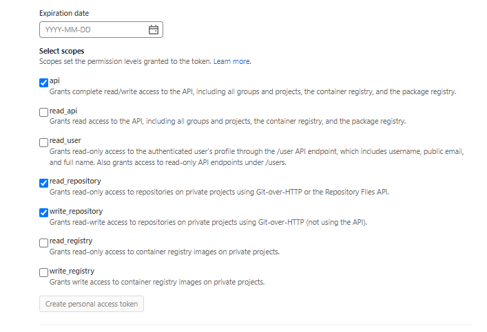 . - In the Personal Access Token field, provide a GitLab personal access token as a Harness encrypted text secret.