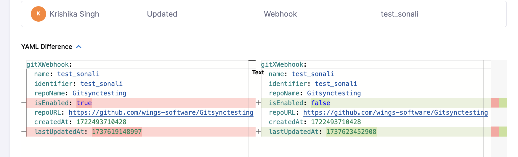 View Webhook Events: in the Git information on your Harness entity, you can select View Webhook Events and see each event and payload for that entity.