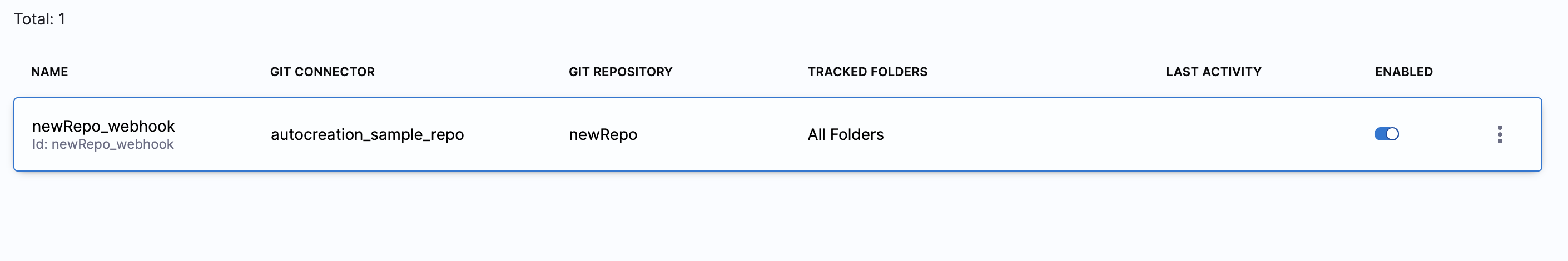 - Harness automatically registers the webhook using the same Git connector that was used when the entity was created.