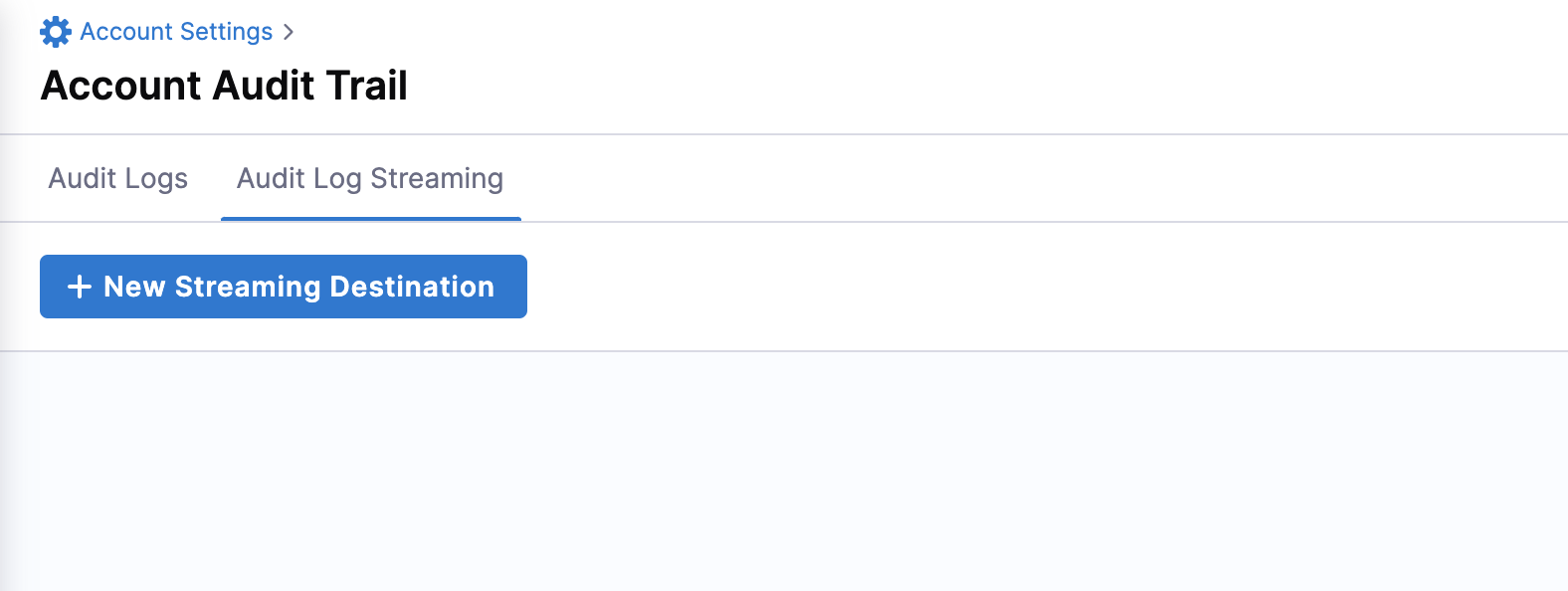Select Audit Log Streaming, then select New Streaming Destination to open the configuration settings.