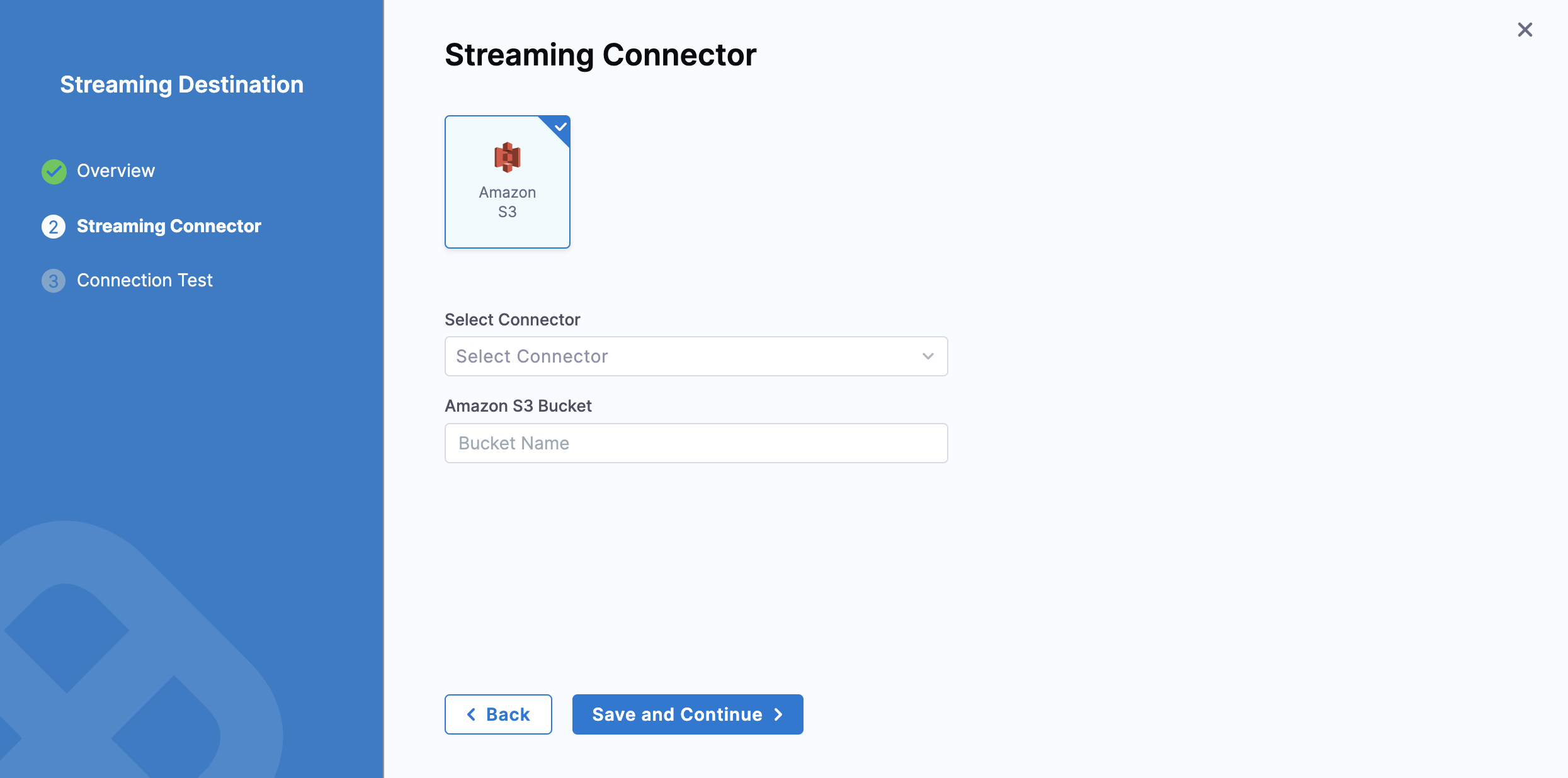 After you add your streaming destination, you're ready to configure the streaming connector.