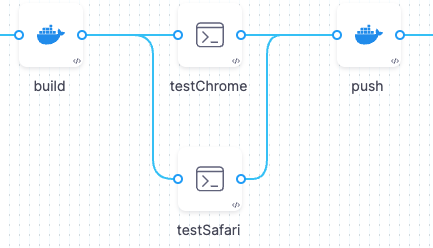 - Assume you have a Build stage with three steps. The first step builds an artifact for a web app. The second step runs the artifact in a browser to confirm that it runs. The third step pushes it to a registry.