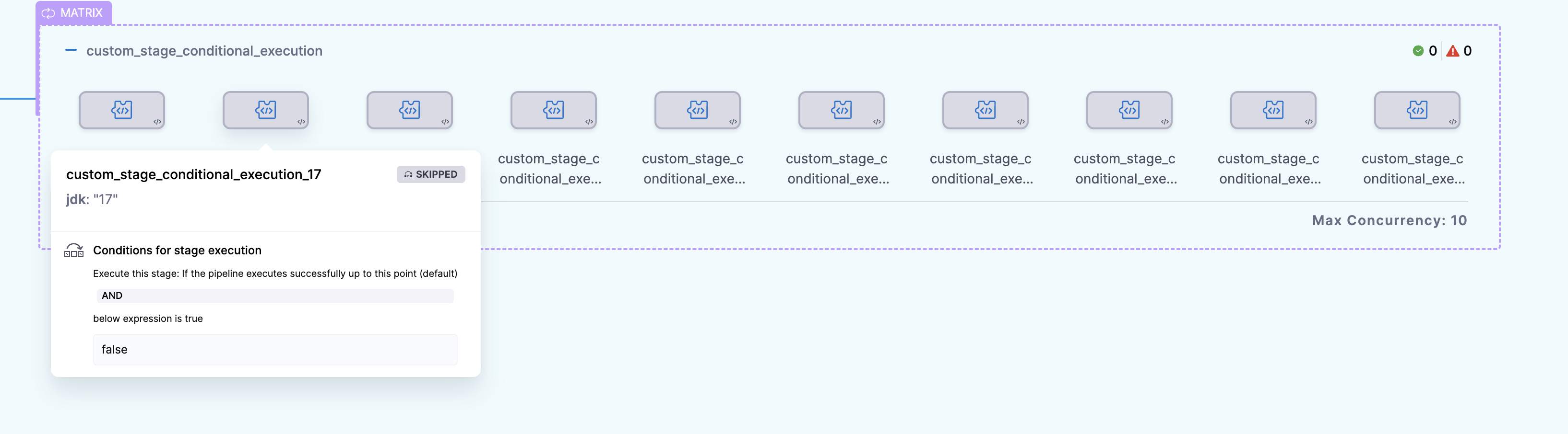 list), and then Harness checks the stage's conditional execution against each instance created by the matrix.