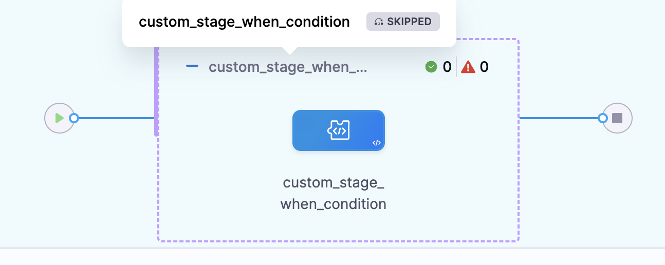 In this example, the conditional execution is hardcoded to resolve to false, so every stage is skipped.