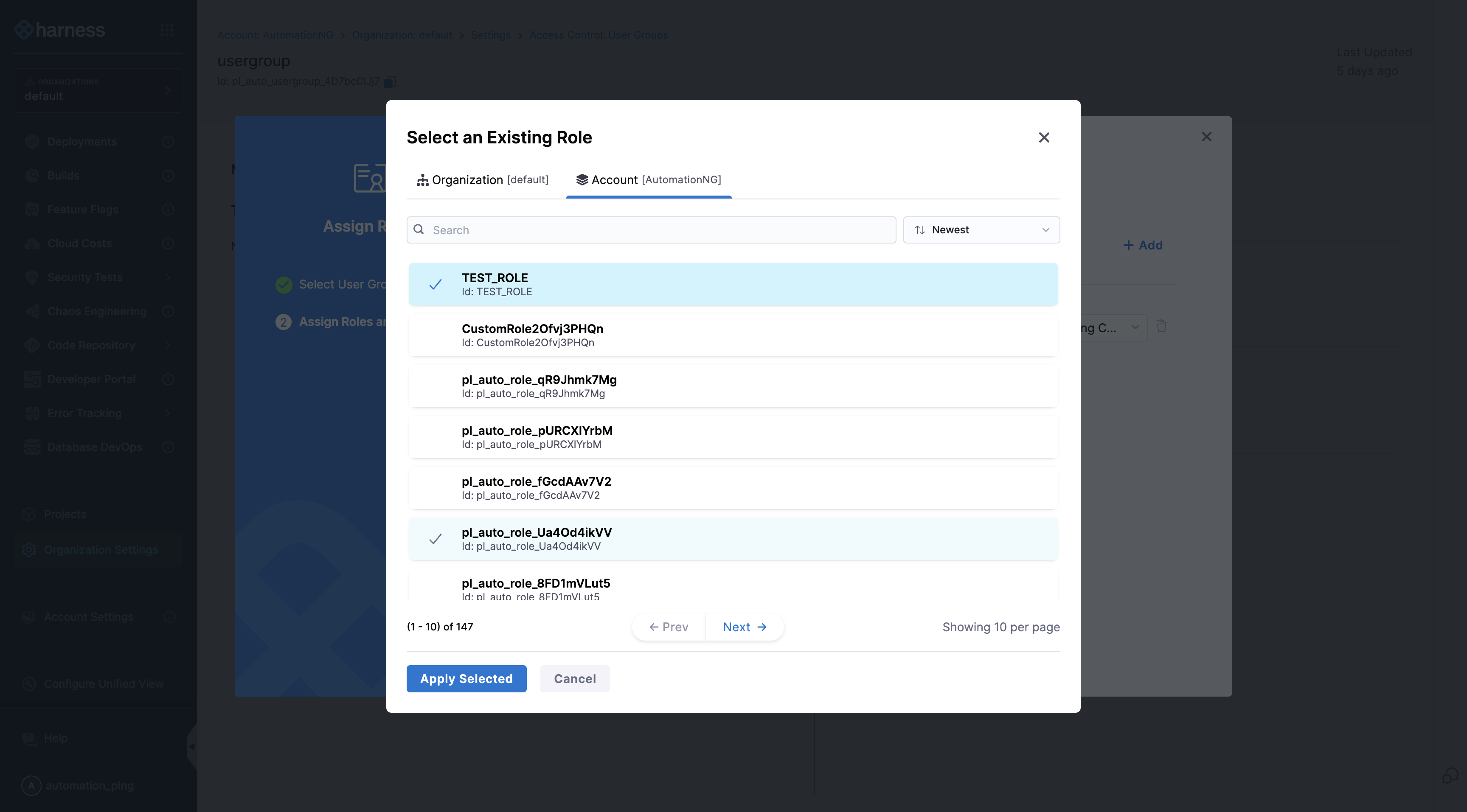 1. In Harness, go to Account Settings, select Organizations, select the relevant organization, and then select Access Control.
