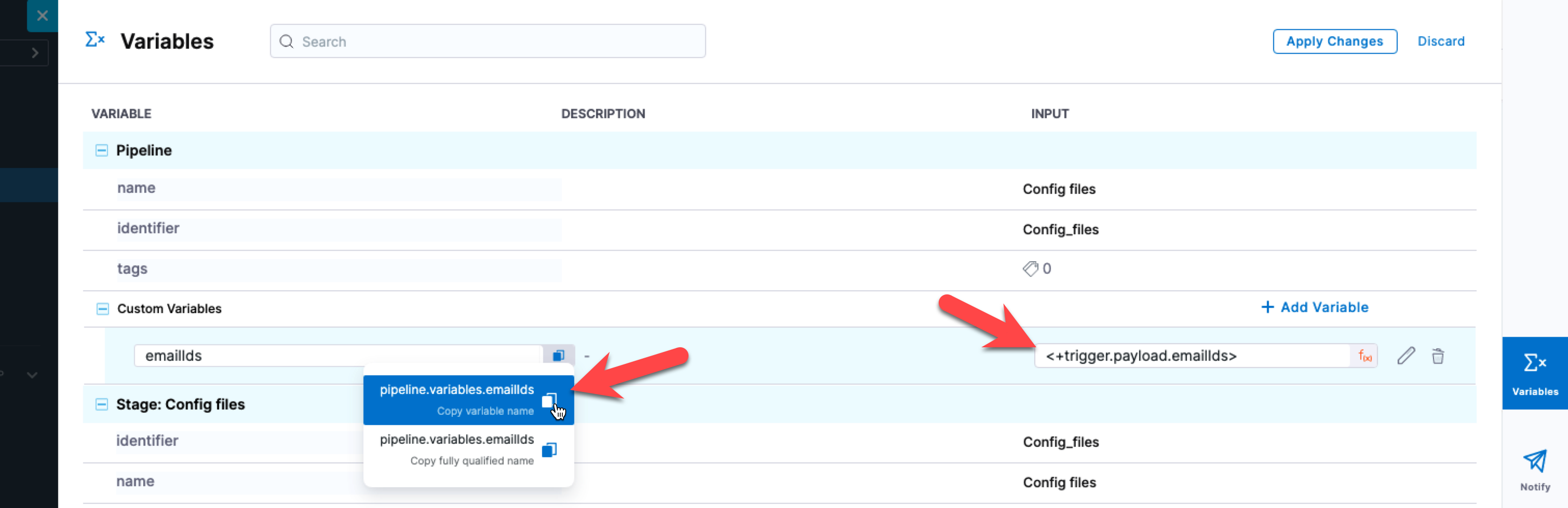 emailId: <+pipeline.variables.emailIds>.split(',')