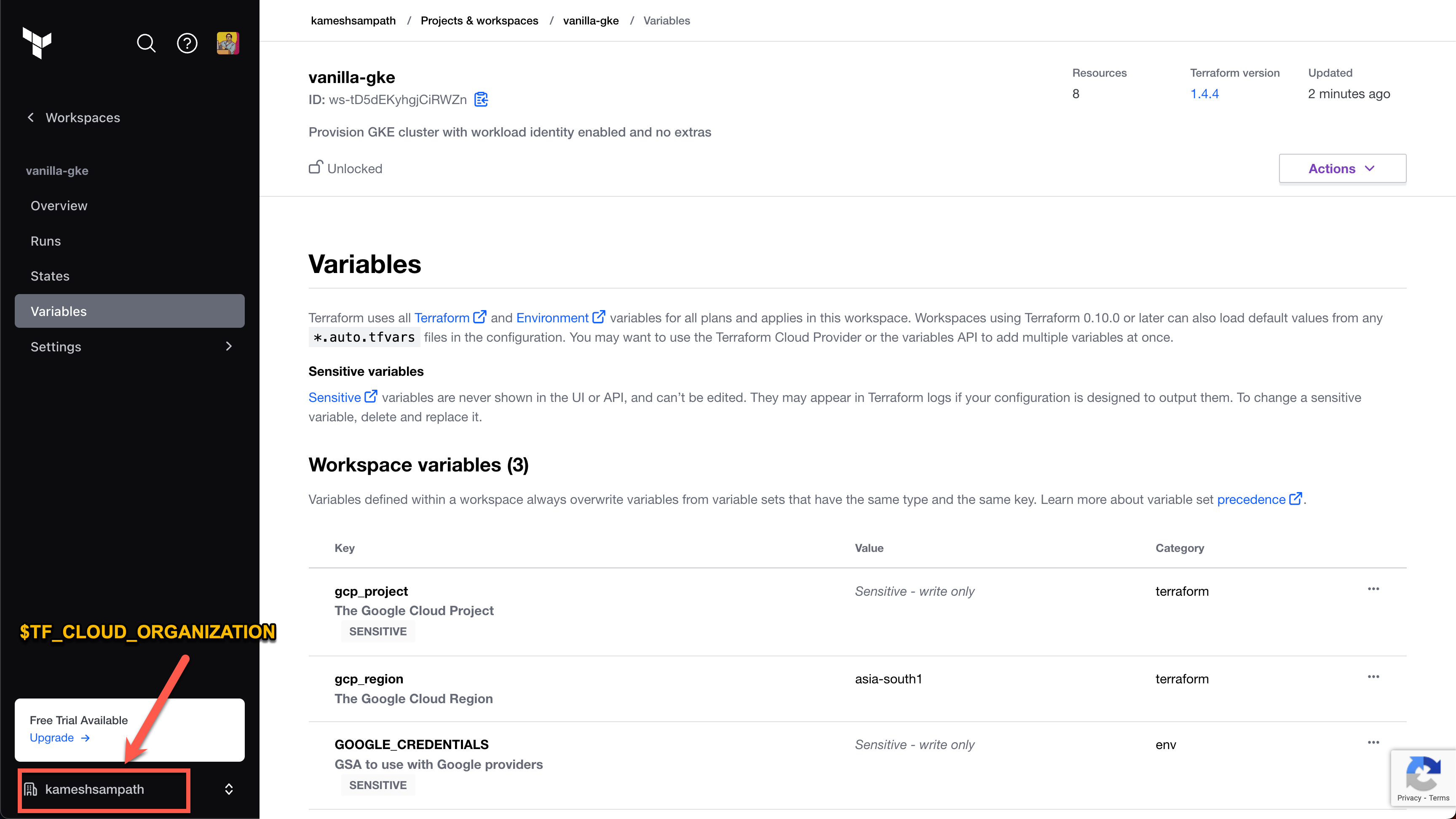 - IaC vanilla-gke: The Terraform source repository used with Terraform Cloud to provision GKE. Code samples in this tutorial reference this repo by