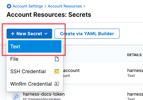 Harness recommends you create the following resources at the Account level. This enables you to use them across all projects and pipelines in the account.