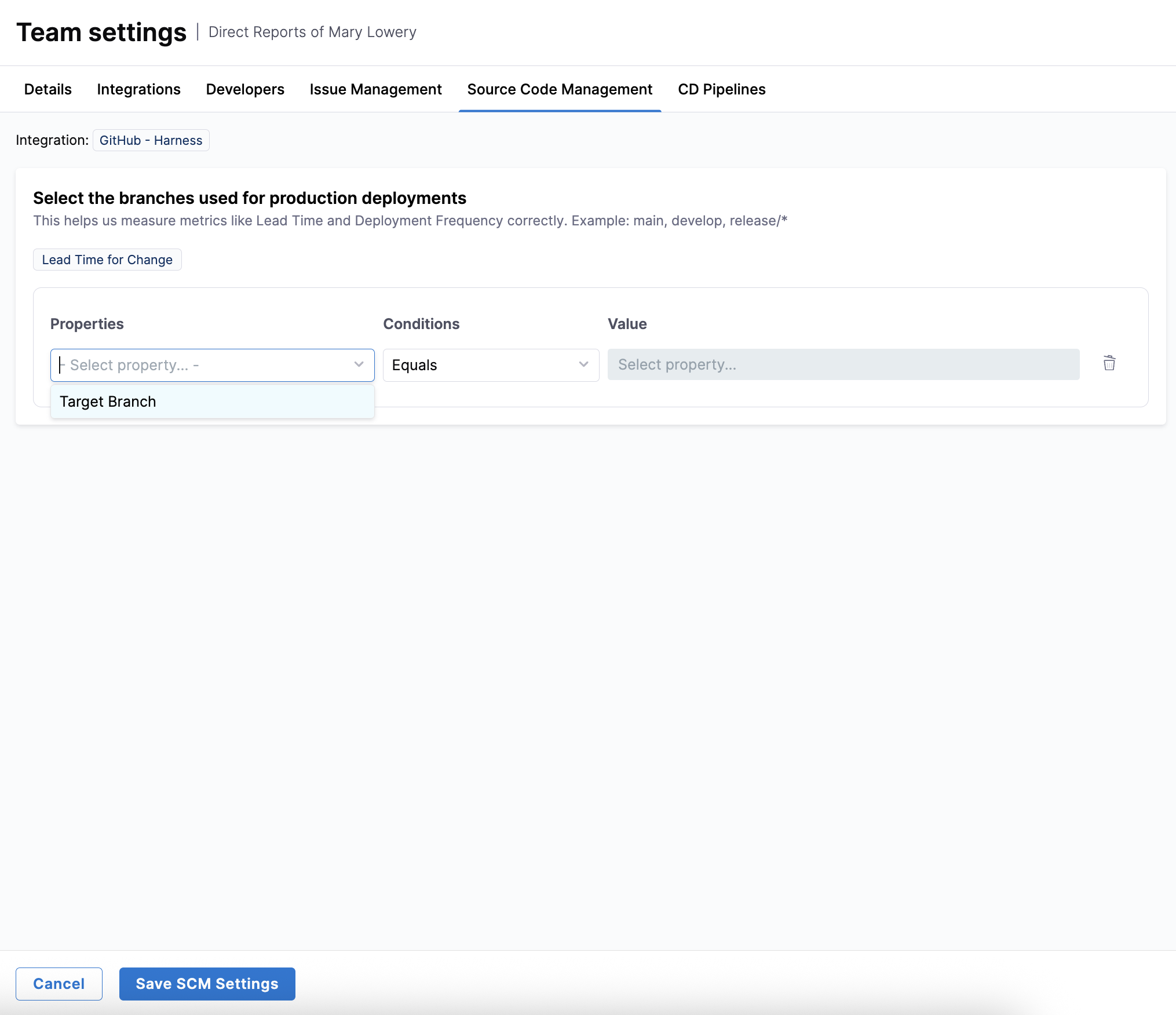 ) on the Source Code Management tab.Once you've set the target branch, click Save SCM Settings.