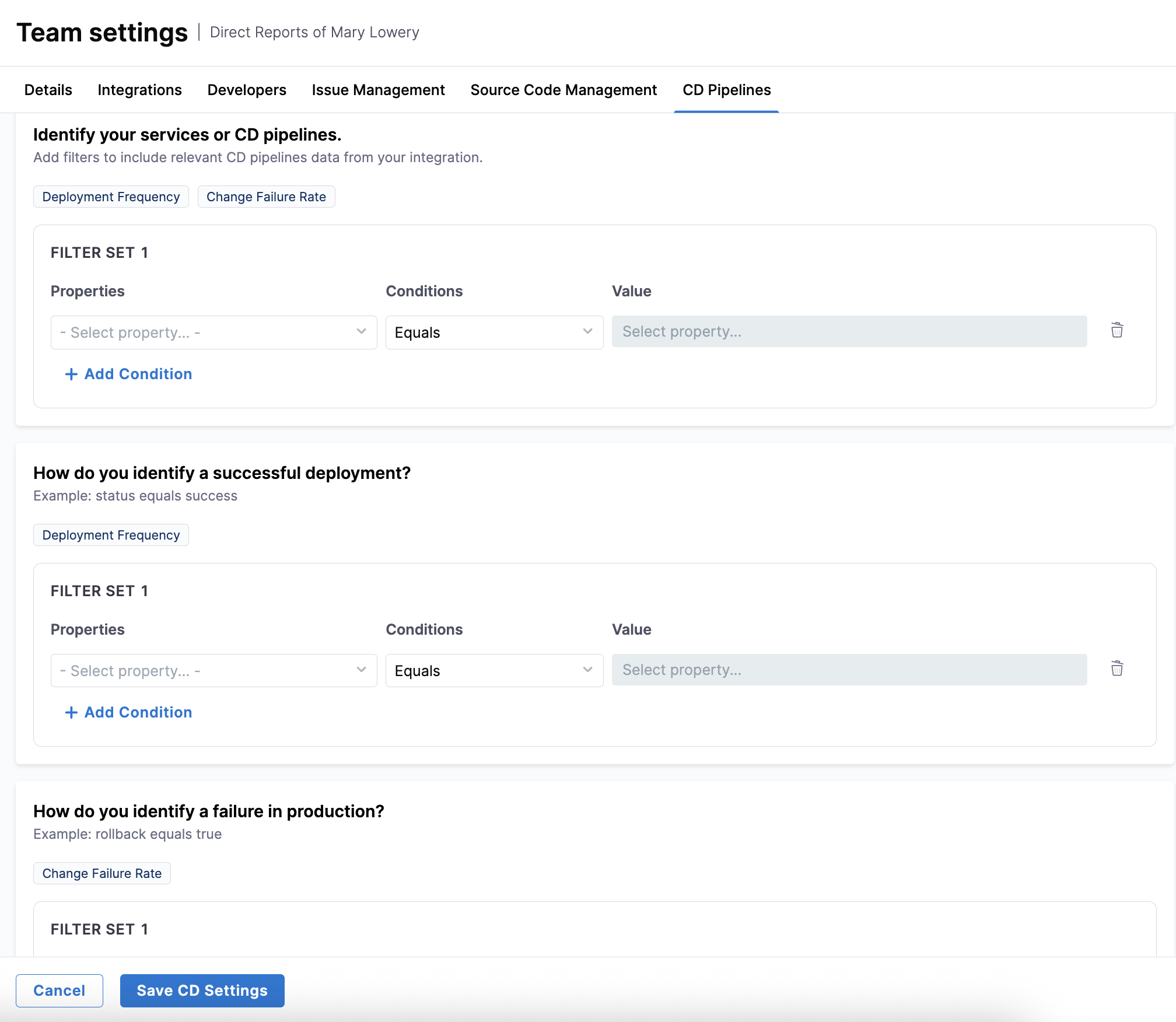 ) on the CD Pipelines tab.Once you've configured these filter sets, click Save CD Settings.