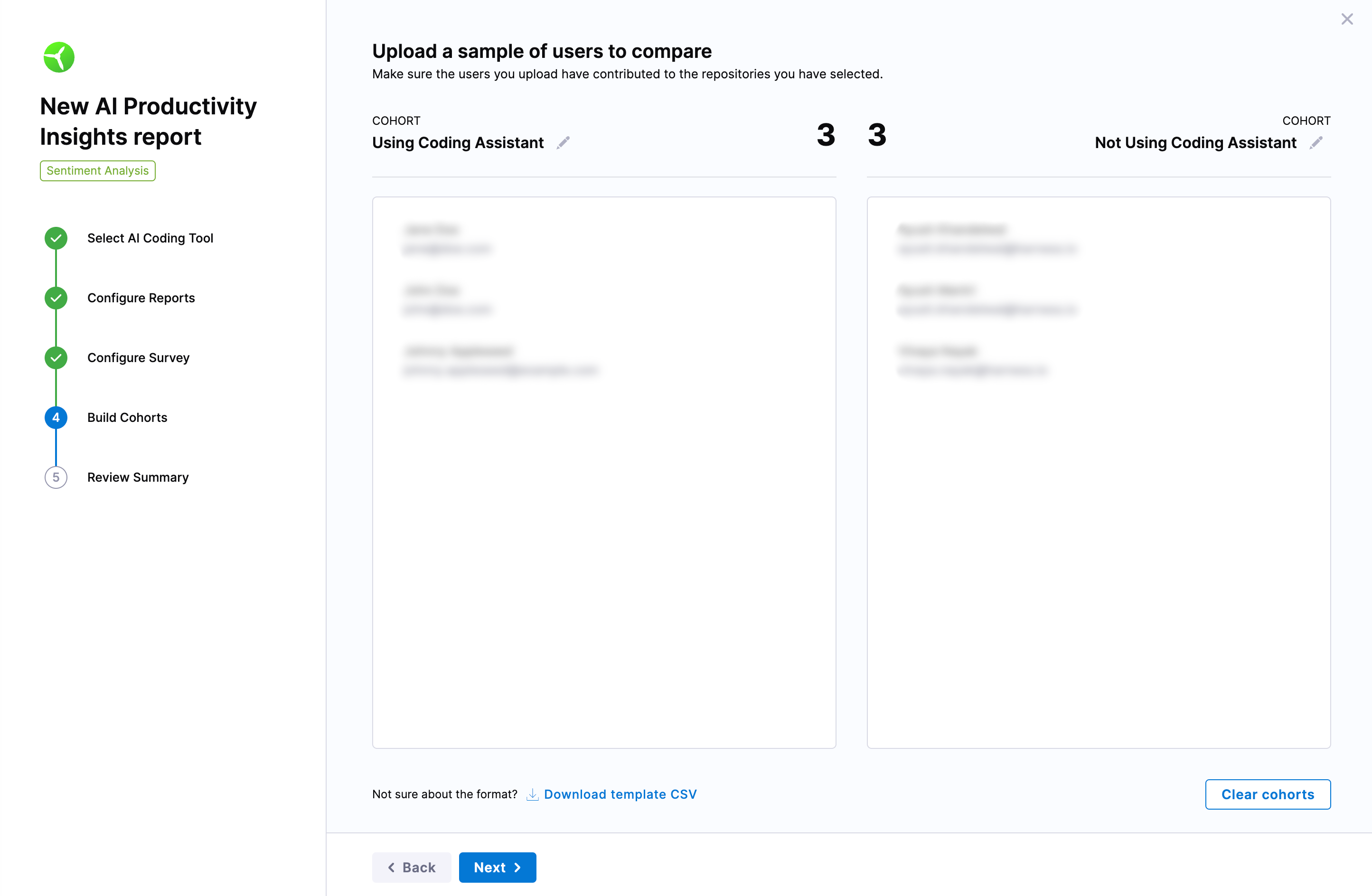 - Quick feedback loops: When you need to quickly assess how AI tools are impacting your developers' experience and performance.