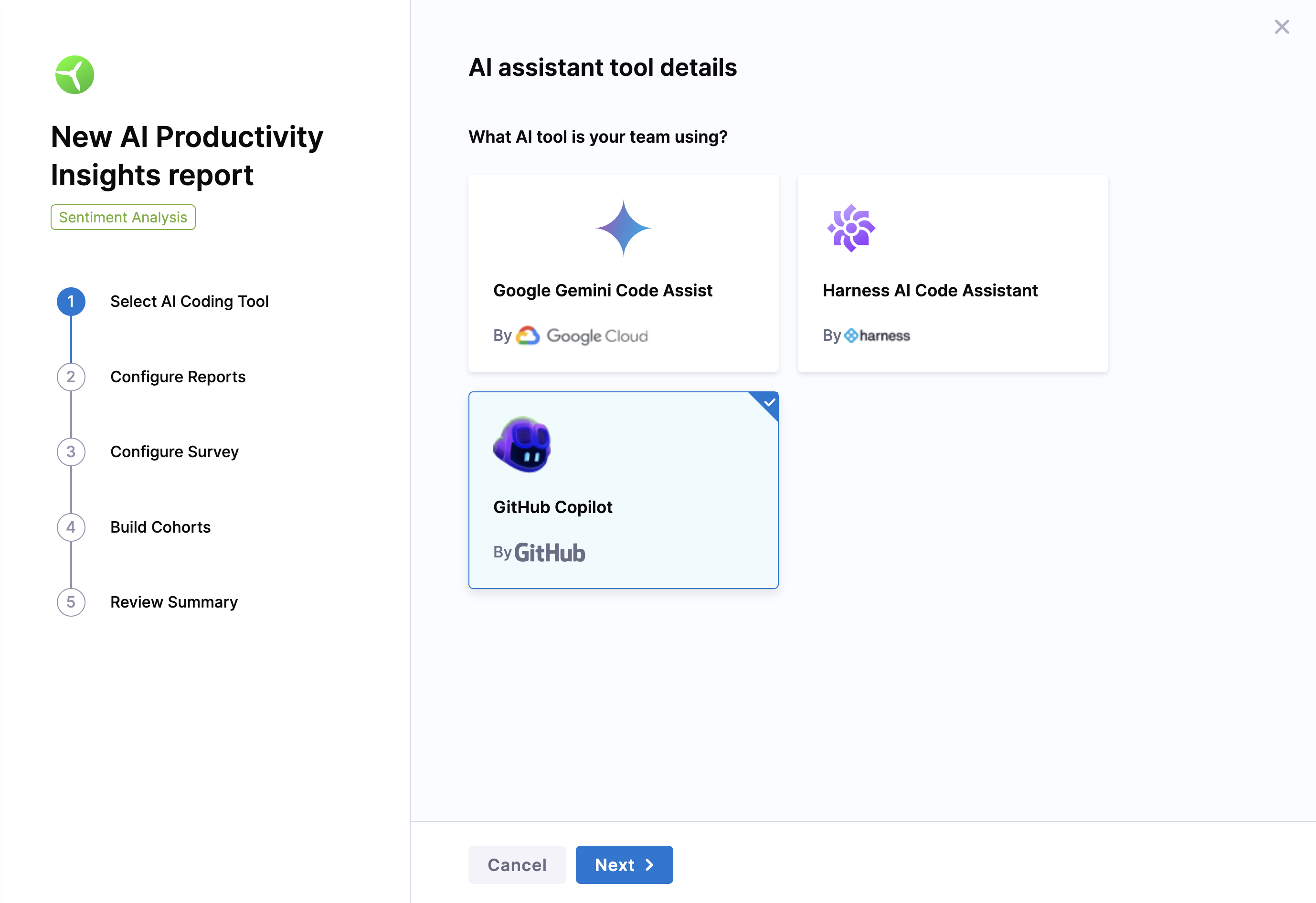 - Using AI Tools: Developers actively using AI tools like GitHub Copilot or Harness AI Code Assistant.