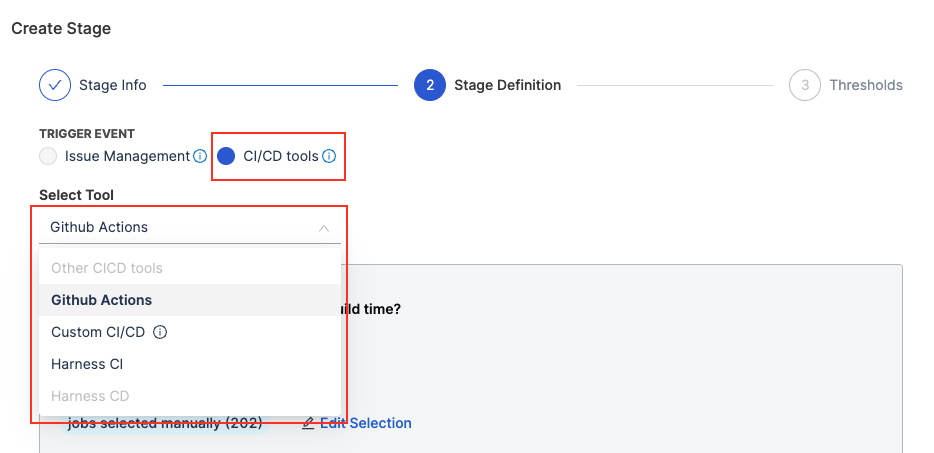 - Define the Stage Trigger Event (e.g., Issue Management) and map the stage to statuses in your issue management system.