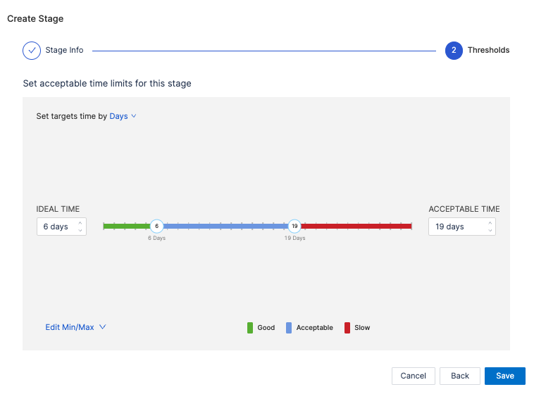• Set acceptable time ranges for the stage, such as Ideal Time and Acceptable Time.