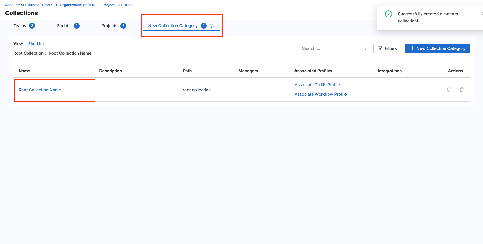 Adding custom Collection categories is considered an advanced feature. It is recommended to contact Harness Support to ensure proper configuration.