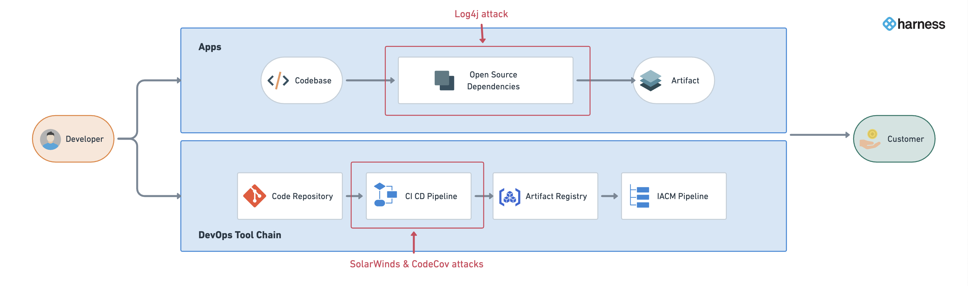 High-profile breaches, like those experienced by Log4j, SolarWinds and Codecov, have further underscored the importance of software supply chain security. While standard security techniques for detecting vulnerabilities in source code are essential, they don't fully address the risks throughout the supply chain journey, - from source to distribution.